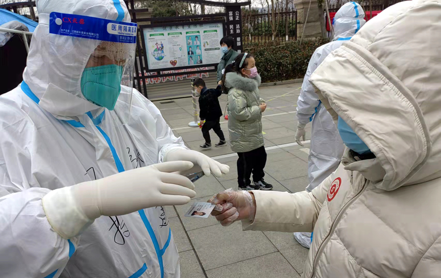 “你好!我是文昌社區(qū)志愿者。”一遍遍地重復(fù)著同樣話語,敲開一扇扇門,為了摸清底數(shù),掌握實(shí)情,精準(zhǔn)施策,支部黨員志愿者挨家挨戶上門登記。青年黨員劉林回憶,電梯停開,一次一口氣跑上8樓后,還沒有來得及敲門,發(fā)現(xiàn)戴著N95口罩根本無法大口喘氣,一陣窒息感隨之而來,至今難忘;來自一線的黨員楊加軍,是一名退伍軍人,憑借著在部隊(duì)刻苦磨礪出來的認(rèn)真勁兒,硬是穿著“大白”連續(xù)工作17個(gè)小時(shí),滴水未進(jìn),完成采集核酸登記檢測(cè)人員信息1200人,防護(hù)服內(nèi)下著“小雨”,雙手被汗水浸得發(fā)白,臉上被口罩勒出深深的溝痕。當(dāng)“大白”很苦,但每當(dāng)他們看到胸前黨員徽章時(shí),總會(huì)想:“我是黨員,關(guān)鍵時(shí)刻,就要沖得出、頂?shù)蒙??!?/span>