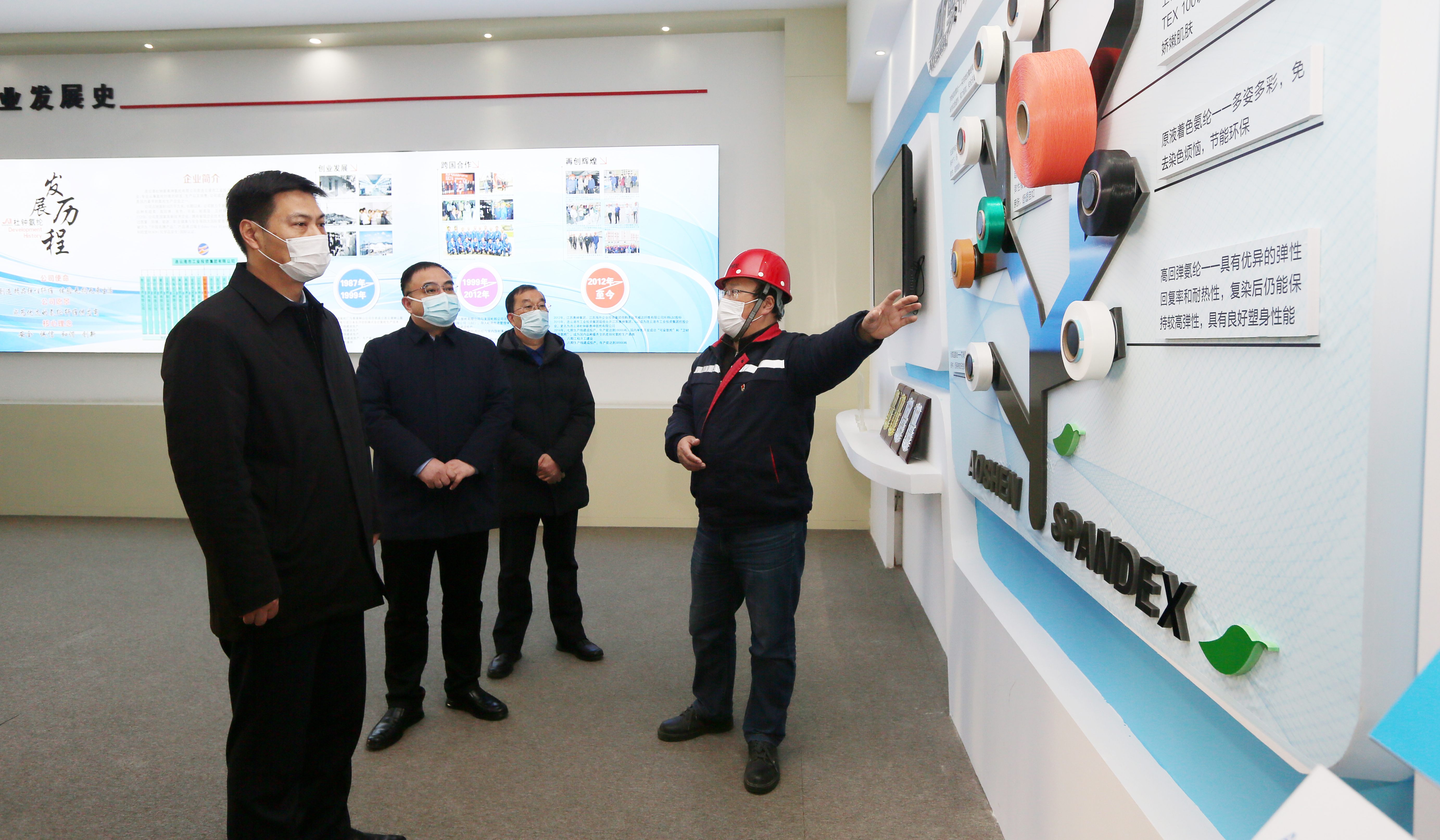 魏愛春一行先后走訪了氨綸公司、神特公司,考察了八期生產(chǎn)線、研發(fā)中心等項(xiàng)目,了解了企業(yè)發(fā)展規(guī)模、生產(chǎn)經(jīng)營、發(fā)展愿景、產(chǎn)品研發(fā)、科技創(chuàng)新等方面情況。