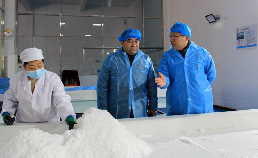 楊龍察看了金橋制鹽公司雪花鹽車(chē)間、加工鹽車(chē)間、包裝鹽車(chē)間生產(chǎn)現(xiàn)場(chǎng),詳細(xì)了解企業(yè)近期的產(chǎn)品生產(chǎn)銷(xiāo)售情況,要求該公司要繼續(xù)抓好疫情防控、產(chǎn)品市場(chǎng)開(kāi)拓和冬季安全生產(chǎn)工作。