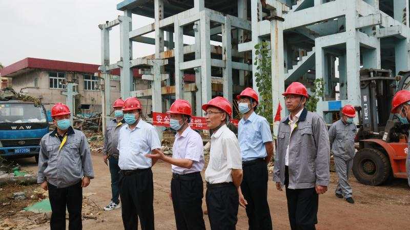 9月14日下午,集團(tuán)公司黨委書(shū)記、董事長(zhǎng)楊龍、總經(jīng)理胡建明、副總經(jīng)理張其海等一行,深入金航資產(chǎn)經(jīng)營(yíng)公司,就關(guān)?;て髽I(yè)拆除現(xiàn)場(chǎng)施工安全情況進(jìn)行檢查。