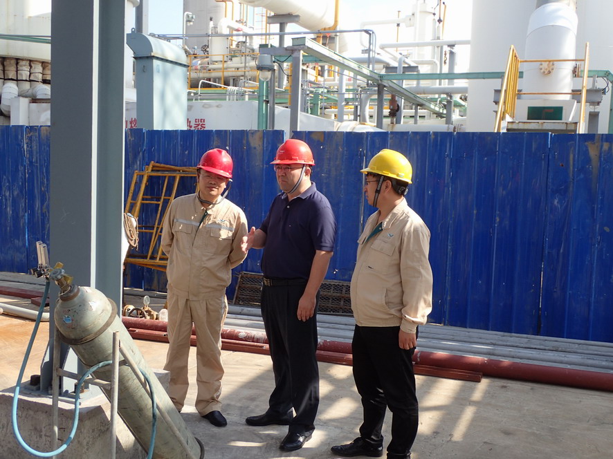 楊龍一行實地查看了氯堿公司氫氣純化技改項目、天然氣制氫壓縮機廠房現(xiàn)場和氨綸公司精制罐區(qū)、危廢庫等重點區(qū)域,就相關(guān)設(shè)備運行、安全防范情況進行詳細(xì)了解。楊龍強調(diào),新中國成立70周年即將到來,要把安全工作當(dāng)成一項重要的政治任務(wù),認(rèn)真做好各個重點部位、關(guān)鍵裝置等環(huán)節(jié)的排查和治理,提高專業(yè)化水平,做到立行立改。要提高安全生產(chǎn)意識,認(rèn)真落實好安全檢查、節(jié)假日應(yīng)急管理和值班制度,強化對設(shè)備的檢查維護和隱患整改,確保節(jié)日期間安全生產(chǎn)平穩(wěn)運行。