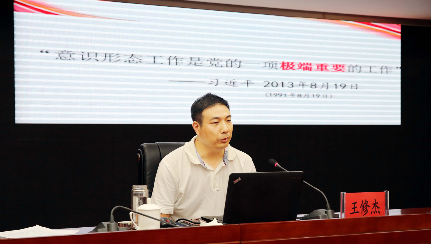 王修杰以“牢牢掌握意識形態(tài)工作的領(lǐng)導(dǎo)權(quán)”為題,結(jié)合國際國內(nèi)形勢和我市實(shí)際,圍繞充分認(rèn)識意識形態(tài)工作的極端重要性、深刻把握當(dāng)前意識形態(tài)領(lǐng)域復(fù)雜形勢、全面落實(shí)黨委意識形態(tài)工作責(zé)任制等方面內(nèi)容,深入淺出的剖析解讀了意識形態(tài)工作的基本內(nèi)涵、重大意義,報(bào)告主題鮮明、內(nèi)涵深刻、闡述透徹、聯(lián)系實(shí)際、條理清晰,既有理論思考、又有經(jīng)驗(yàn)總結(jié),為與會人員深刻理解和把握新時(shí)代國企意識形態(tài)工作的新使命、新要求、新任務(wù)、新方法具有很強(qiáng)的現(xiàn)實(shí)指導(dǎo)意義。