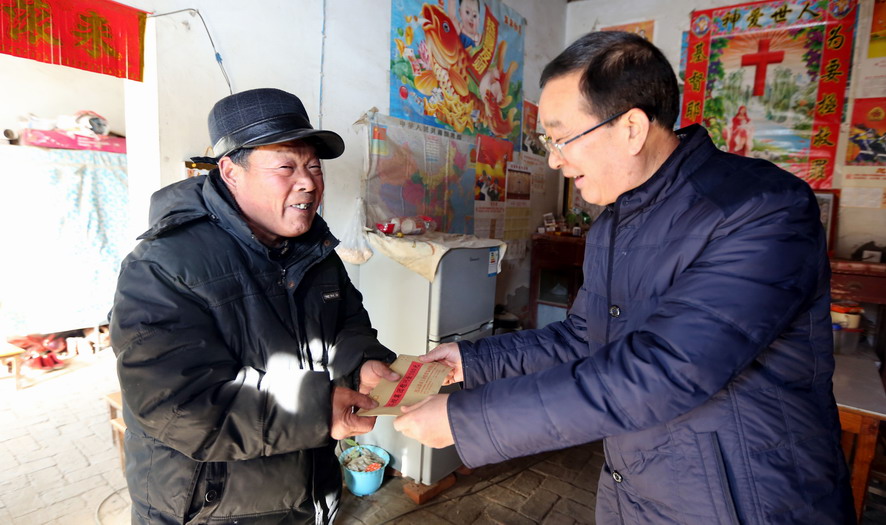 1月20日上午,集團公司總經(jīng)理胡建明代表集團黨委專門來到對口扶貧點,贛榆區(qū)沙河鎮(zhèn)北朱果村走訪慰問貧困戶。在沙河鎮(zhèn)人大主席曹軍華的陪同下,胡建明共看望了十戶貧困戶,每到一家,都關(guān)切地詢問他們生產(chǎn)生活狀況和遇到的困難,勉勵他們堅定信心,樹立戰(zhàn)勝困難的勇氣,并為他們送去慰問金和節(jié)日的祝福。