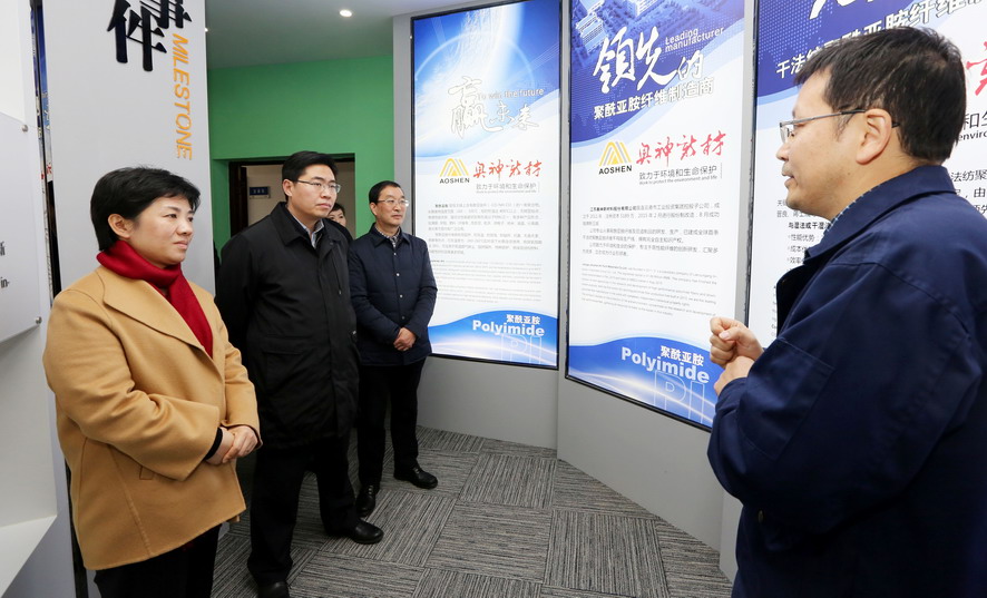 萬(wàn)聞華一行先后參觀了奧神新材料公司展廳和生產(chǎn)車間,聽取了該公司目前的發(fā)展情況匯報(bào),詳細(xì)了解高性能纖維產(chǎn)品的相關(guān)性能和發(fā)展前景,對(duì)該公司在纖維行業(yè)等方面取得的成績(jī)給予充分肯定。萬(wàn)聞華希望奧神新材料公司要進(jìn)一步突出“高、新、優(yōu)”特色,不斷推動(dòng)產(chǎn)業(yè)高端化、規(guī)?;?、集聚化發(fā)展,為推動(dòng)全市纖維新材料產(chǎn)業(yè)發(fā)展做出新的貢獻(xiàn)。