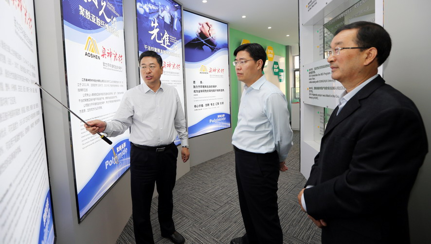 曹衛(wèi)東一行先后參觀(guān)了奧神新材料公司展廳和聚酰亞胺高性能纖維生產(chǎn)車(chē)間,并聽(tīng)取了相關(guān)情況匯報(bào),對(duì)奧神新材料公司的研發(fā)能力和高性能纖維產(chǎn)業(yè)發(fā)展成效給予了充分肯定。曹衛(wèi)東指出,奧神新材料公司成立五年來(lái),以創(chuàng)新驅(qū)動(dòng)轉(zhuǎn)型為動(dòng)力,致力推進(jìn)企業(yè)技術(shù)創(chuàng)新、產(chǎn)品創(chuàng)新和市場(chǎng)創(chuàng)新,取得了令人矚目的成績(jī)。“十三五”期間,作為高性能纖維自主研發(fā)制造企業(yè)、聚酰亞胺纖維干法紡絲生產(chǎn)核心技術(shù)的掌握者,奧神新材料公司要進(jìn)一步突出高、新、優(yōu)特色,切實(shí)踐行創(chuàng)新發(fā)展理念,加強(qiáng)自主知識(shí)產(chǎn)權(quán)保護(hù),在聚酰亞胺纖維研發(fā)及生產(chǎn)方面著力突破新技術(shù)、提升創(chuàng)新力,推動(dòng)產(chǎn)業(yè)高端化、規(guī)?;⒓刍l(fā)展,打造國(guó)內(nèi)一流的新材料產(chǎn)業(yè)基地,為推動(dòng)連云港市纖維新材料產(chǎn)業(yè)發(fā)展做出新的貢獻(xiàn)。