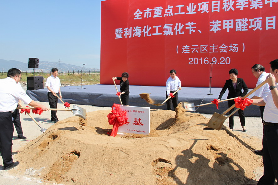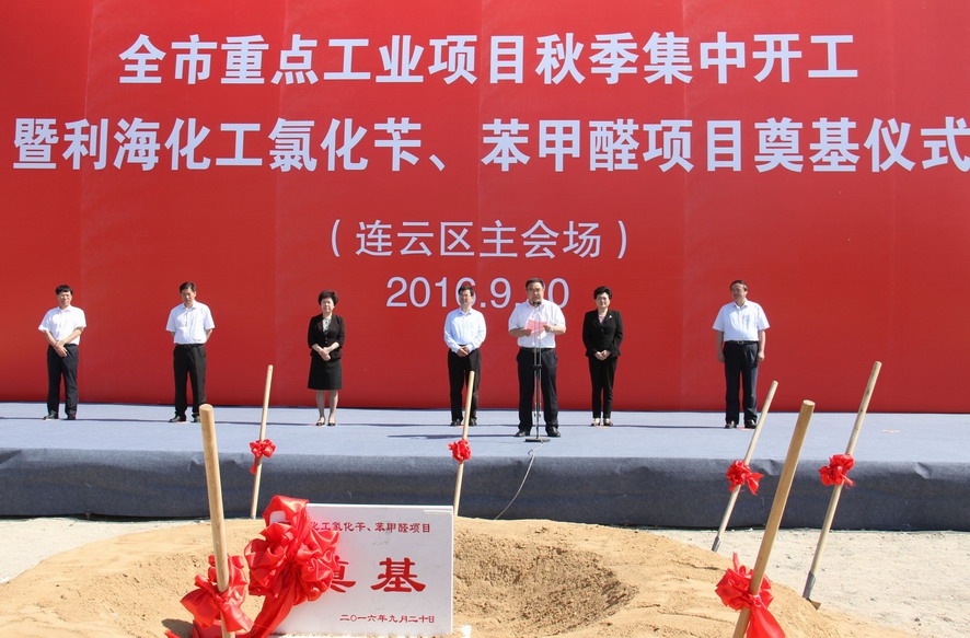 9月20日,我市重點(diǎn)工業(yè)項(xiàng)目秋季集中開工(連云區(qū)主會(huì)場)暨利?;ぢ然S、苯甲醛項(xiàng)目奠基儀式在利海公司舉行,市委書記、市人大常委會(huì)主任楊省世,市領(lǐng)導(dǎo)楊莉、董恕娟、徐家保、魯林,集團(tuán)公司董事長、黨委書記楊龍、總經(jīng)理胡建明等出席開工儀式。