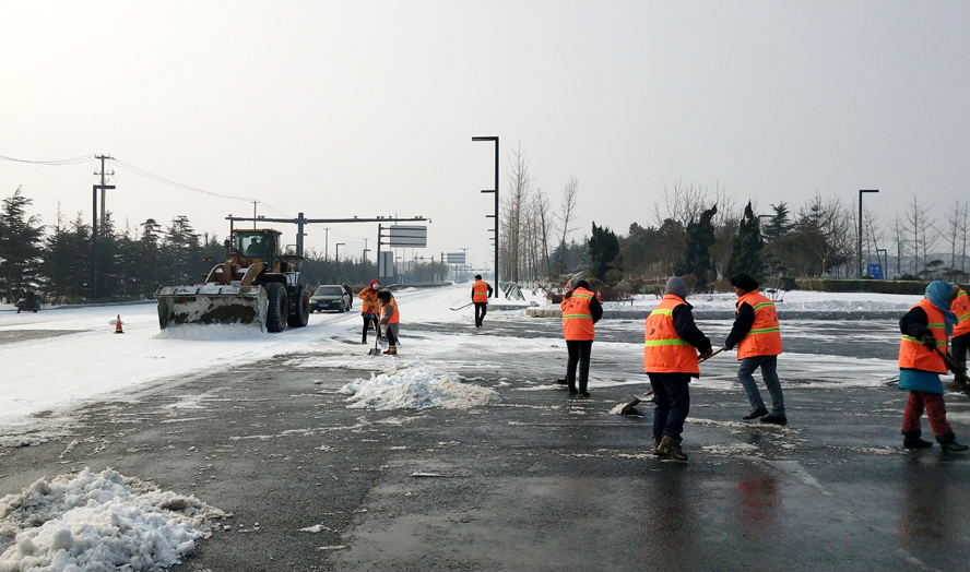 由于28日最高氣溫只有1度,路面積雪很難融化,當(dāng)天又恰逢周末,是居民大量外出的時(shí)段。為了確保人、車流高峰期間交通安全,華茂公司職工放棄周末休息,精心組織,緊密協(xié)調(diào)。從早上7點(diǎn)起,就組織工人在花果山大道、黃海大道、東方大道、新光路下穿涵洞、火車站匝道等路段撒布氯化鈣,加速積雪融化,防止路面低溫降雪產(chǎn)生冰凍,為及時(shí)掃除冰雪和確保居民正常出行提供保障。該公司組織職工近300人次,鏟車、平板車、裝載機(jī)、工程車輛等作業(yè)機(jī)械十余臺(tái)(班)投入到掃除積雪工作中去,使用氯化鈣十余噸。截止28日下午4時(shí),經(jīng)過近一天的緊張作業(yè),各條主干道積雪基本清理完畢,道路恢復(fù)通暢。