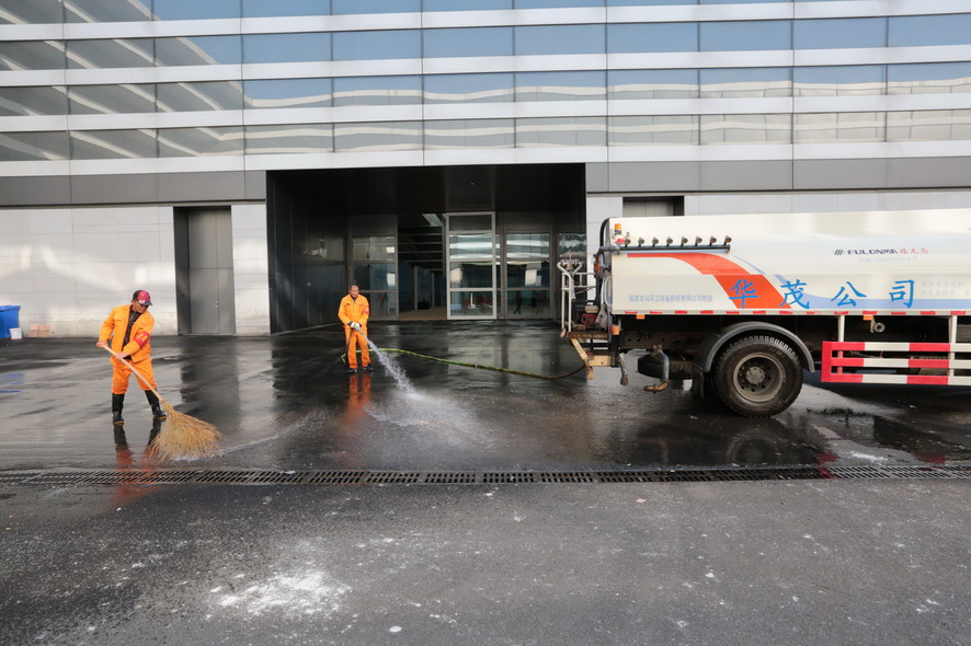 從10月29日以來(lái),該公司啟動(dòng)預(yù)案,統(tǒng)籌策劃,組織安排人員,調(diào)度機(jī)械設(shè)備,分解任務(wù),明確責(zé)任時(shí)間節(jié)點(diǎn),有效使用創(chuàng)衛(wèi)成果,轉(zhuǎn)投到“連博會(huì)”環(huán)境整治工作中來(lái)。300多名職工不顧連續(xù)5個(gè)多月創(chuàng)衛(wèi)奮戰(zhàn)的疲倦和勞累,以飽滿激情、高昂斗志,加班加點(diǎn),奮戰(zhàn)在連博會(huì)環(huán)衛(wèi)整治工作“新戰(zhàn)場(chǎng)”。連日來(lái),累計(jì)在展館周邊區(qū)域新植銀杏樹(shù)40余株、石楠樹(shù)30多株,更新草坪10000多平方米,美化環(huán)境,烘托氛圍。在展館廣場(chǎng)、附近干、支道路上,每天安排2臺(tái)大型洗掃車循環(huán)清掃沖洗和灑水降塵作業(yè),安排120多名環(huán)衛(wèi)人員撿拾動(dòng)態(tài)垃圾、清理布展施工垃圾雜物,提升展館周邊區(qū)域的場(chǎng)地路面整潔衛(wèi)生養(yǎng)護(hù)等級(jí)。連云港火車東站廣場(chǎng)新增加30名環(huán)衛(wèi)人員,對(duì)廣場(chǎng)的路面、橋欄、果皮箱、花壇、座椅等進(jìn)行多次清掃擦洗,撿拾清理清運(yùn)垃圾,并將車站廣場(chǎng)環(huán)衛(wèi)保潔下班時(shí)間由晚8點(diǎn)延長(zhǎng)到10點(diǎn),通過(guò)細(xì)致優(yōu)質(zhì)服務(wù),強(qiáng)化窗口衛(wèi)生環(huán)境,愉悅參展商和來(lái)客的心情。