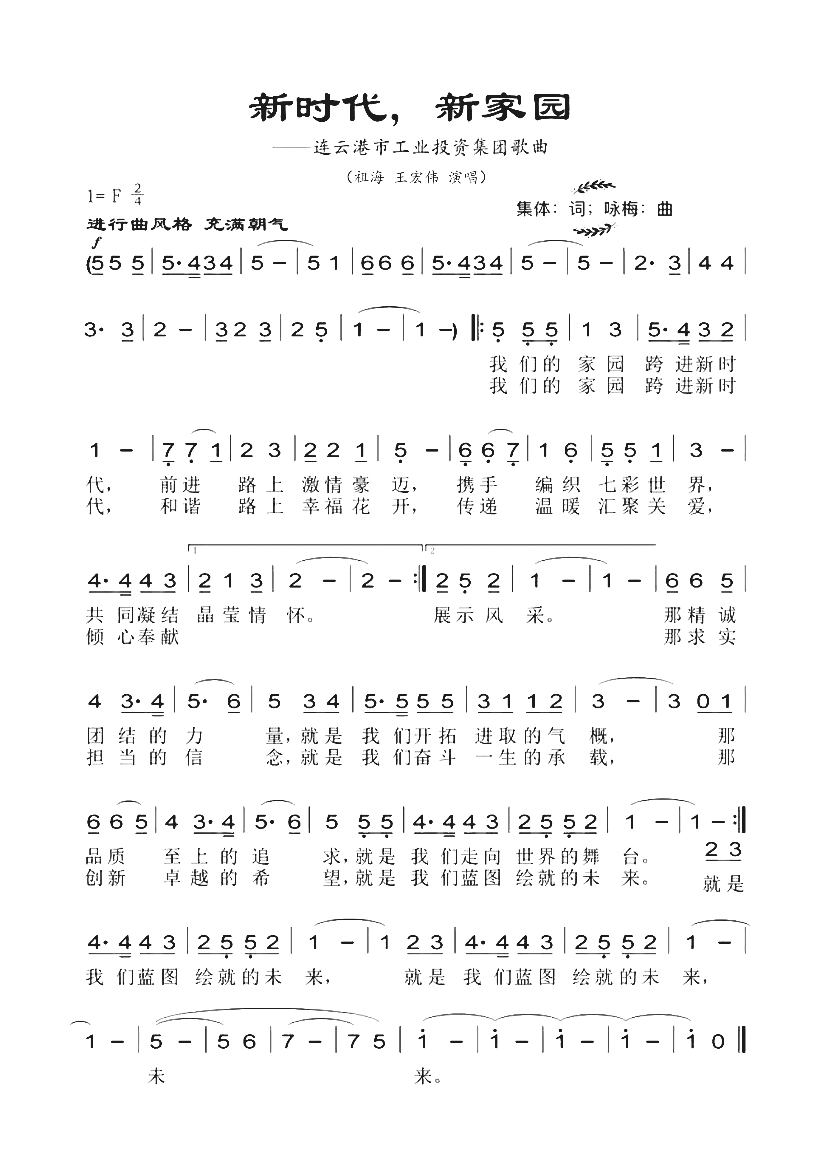集團公司企業(yè)歌曲《新時代,新家園》由我國著名作曲家王詠梅作曲,我國著名歌唱家祖海、王宏偉演唱,亞洲愛樂樂團演奏,愛樂樂團藝術(shù)總監(jiān)、首席指揮黃立杰指揮。