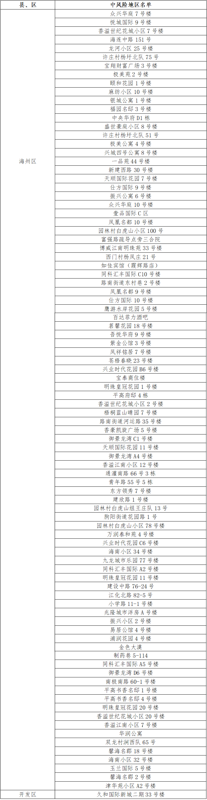 根據(jù)國(guó)務(wù)院聯(lián)防聯(lián)控機(jī)制有關(guān)規(guī)定,經(jīng)市指揮部研究決定,自發(fā)布之日起,對(duì)我市部分區(qū)域疫情風(fēng)險(xiǎn)等級(jí)進(jìn)行調(diào)整: