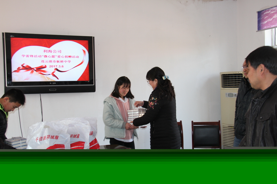 3月6日下午,利海公司按連云區(qū)“學(xué)雷鋒志愿服務(wù)月”活動內(nèi)容,主動聯(lián)系板橋中學(xué),了解到有部分貧困學(xué)生的實際困難后,積極與學(xué)校開展圓夢“微心愿”活動,為他們送去棉衣與書籍等學(xué)生們心中的“微心愿”。