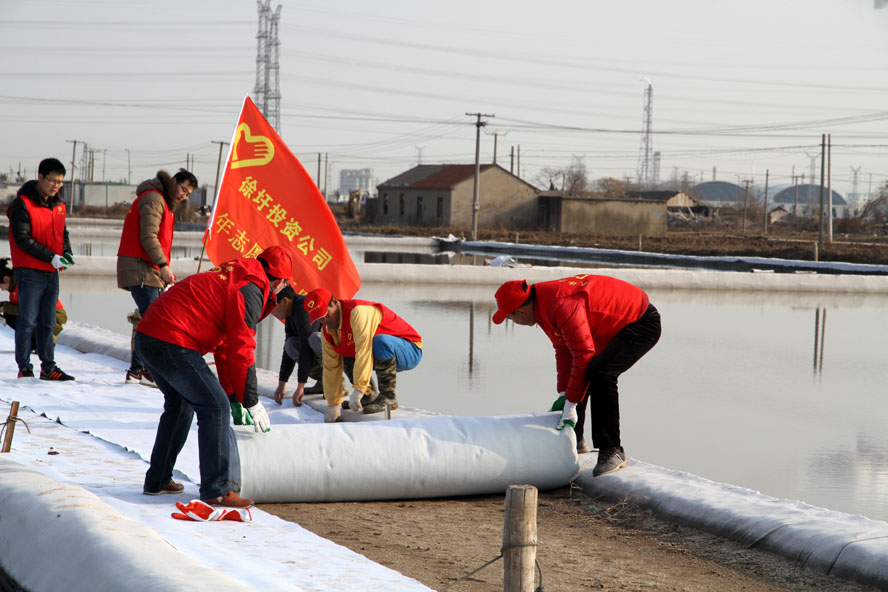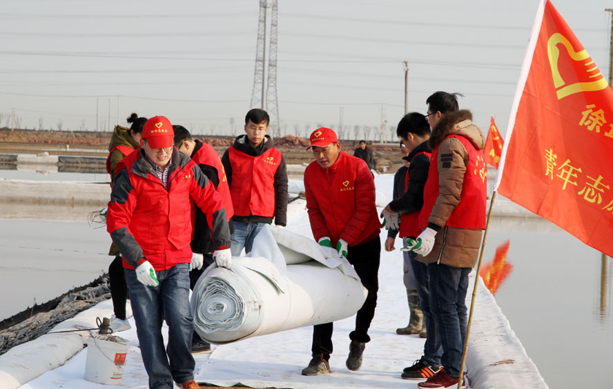 1月11日上午,徐圩投資公司團委組織部分青年志愿者到新灘原料鹽基地十組一單元協(xié)助完成土工布貼埝工作。