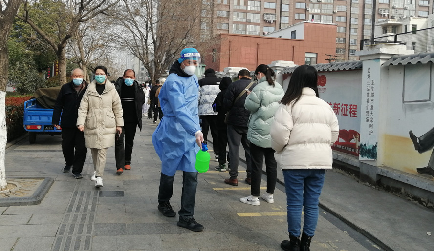 他們是知險而為的逆行者。疫情發(fā)生以來,投資公司各級黨組織深入推進(jìn)“黨旗飄一線、戰(zhàn)疫沖在前”黨內(nèi)專題教育實踐活動,涌現(xiàn)出王同林、汪洋、楊波、丁樂東等一批主動請戰(zhàn)上“疫”線的志愿者,成為港城“疫”線那一抹“天使白、志愿藍(lán)”風(fēng)景里熠熠生輝的“徐圩點”。他們受居家隔離因素制約,就近參加街道社區(qū)的疫情防控工作,協(xié)助社區(qū)全方位開展核酸檢測、電話查訪、信息錄入、樓戶排查、場所消毒、巡邏宣傳等志愿服務(wù)工作。他們中間既有夫妻齊上陣,也有父子同站崗;既有在崗黨員,也有二線黨員。家住興業(yè)時代小區(qū)的侍作華、趙啟英夫婦,自參加防疫志愿行動以來,每天負(fù)責(zé)300份居民物資送貨任務(wù),先是由妻子搬運到樓下,再由丈夫挨家送上門。相對于無電梯的多層樓,身穿“大白”的侍作華每天樓梯來回數(shù)十趟,即使是跑酸腿腳、濕透衣服、干了嗓子,也沒有遞減他堅持就是勝利的戰(zhàn)“疫”信心。作為工投集團(tuán)防疫志愿服務(wù)隊隊員的孫海波,在派駐同科小區(qū)的日子里,每天身穿密不透風(fēng)的“大白”防護(hù)服,一穿就是十幾個小時不下身,即便是汗水浸皺了雙手、臉頰勒出了溝痕,仍然馬不停蹄忙著安排人員做核酸、上門排查健康碼情況,近距離接觸黃、紅碼人員,和同事先后完成小區(qū)1000余戶家庭兩次排查和35000人次核酸檢測人員身份信息采集工作。被社區(qū)稱為“志愿書記”的胡可志,從戰(zhàn)“疫”動員令發(fā)出的當(dāng)天,就志愿參加平山社區(qū)的防疫工作。一人多角色的他,既是秩序員,也是消毒員;既是喊話員,也是宣傳員;既是居民健康碼的驗證員,也是“一米線”距離的監(jiān)督員。在連續(xù)多天的志愿服務(wù)中,也讓社區(qū)人員徹底認(rèn)可他這位不錯的“組織員”。悅升公司居家隔離的青年員工潘浩聽說單位值守員工王亮因突發(fā)哮喘舊疾,及時通過社區(qū)報備、藥房購藥、卡口傳藥等環(huán)節(jié)把應(yīng)急藥物轉(zhuǎn)送到王亮手中,成為架設(shè)“愛心通道”的有心人。