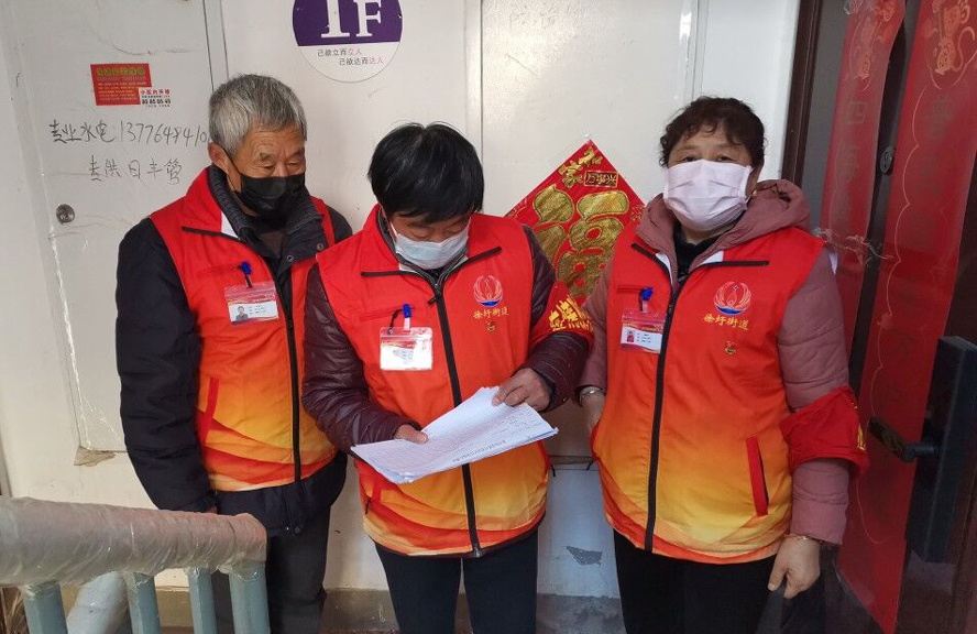 2月13日,幸福家園小區(qū)接到張圩社區(qū)街道求援,幫助挨家挨戶排查測體溫。穆道玲聽到這個消息立馬站出來了,她說:現(xiàn)在正是用人之際,我要求復(fù)崗。就這樣她又參加量體溫工作。她一個人負(fù)責(zé)四棟樓,從一樓到六樓,每天要跑多少遍,一戶都不能漏。在排查、測量體溫過程中有人還不愿意配合,她就耐心地做思想工作,這個活一忙又是一個星期。