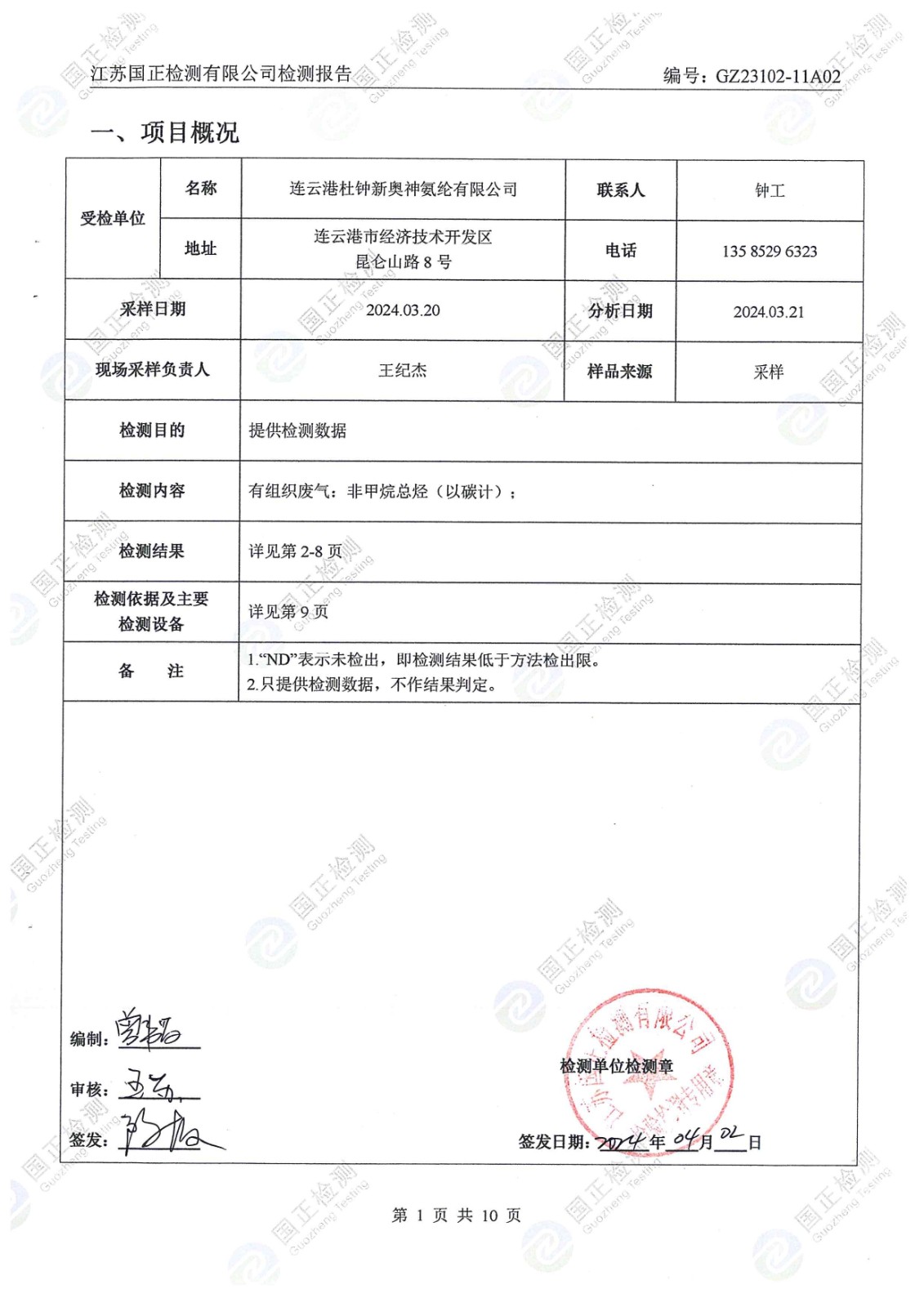 杜鐘氨綸2024年3月檢測(cè)杜鐘年排污檢測(cè)報(bào)告