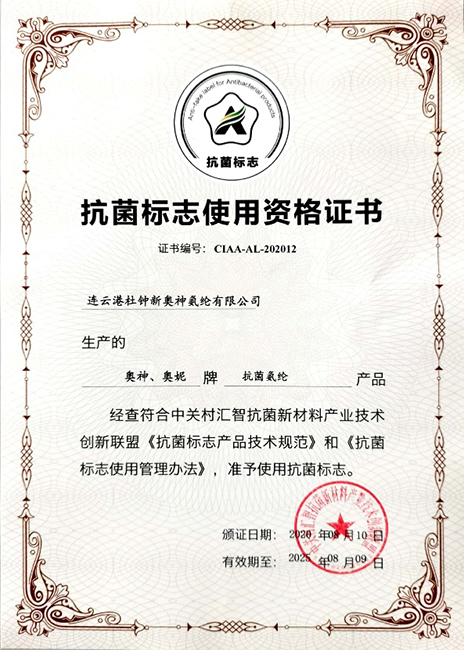 杜鐘氨綸作為CIAA會員,國內(nèi)唯一一家通過“抗菌標(biāo)志”認(rèn)證的氨綸供應(yīng)商,持續(xù)致力于疫情防護(hù),為推動(dòng)健康中國建設(shè),提高人民健康水平做貢獻(xiàn)。