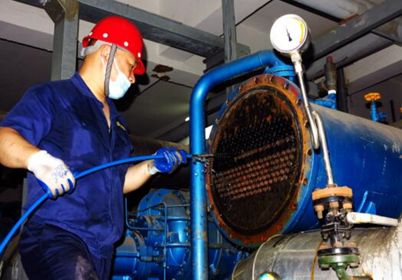 自主性:疫情期間,公用工程部自主維修小組根據(jù)八期冷媒機(jī)組運(yùn)行狀況,判斷急需清洗冷凝器和油冷器的情況,緊急申請(qǐng)采購管道清洗設(shè)備,在無技術(shù)無培訓(xùn)的情況,攻堅(jiān)克難,自加壓力,在較短時(shí)間內(nèi)熟悉和掌握清洗及使用技巧和方法,實(shí)現(xiàn)當(dāng)天內(nèi)完成冷凝器端蓋拆卸、換熱器管束清洗和復(fù)位調(diào)機(jī)工作,保證了生產(chǎn)運(yùn)行的連續(xù)性。