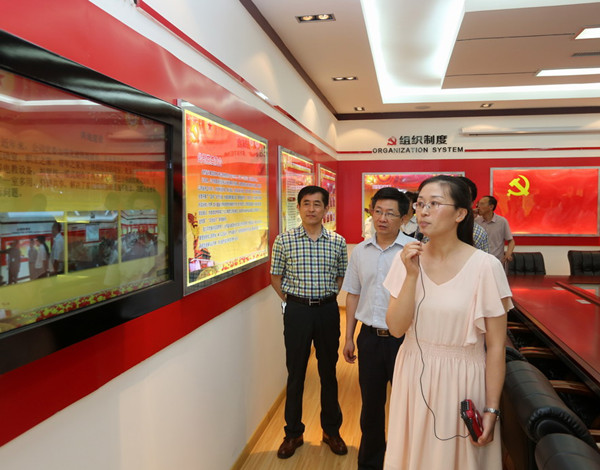6月9日,市委新社工委召開黨建工作觀摩匯報會,市委組織部副部長、市委黨建辦主任陳軍帶領(lǐng)觀摩團(tuán),在集團(tuán)公司領(lǐng)導(dǎo)鄭宜虎的陪同下,到我公司黨建活動室觀摩。