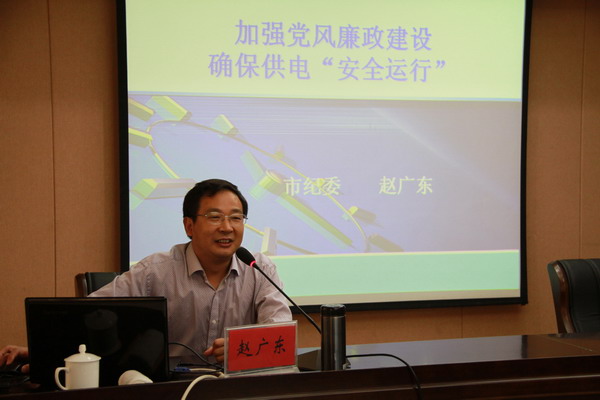 628上午,公司黨委邀請(qǐng)市紀(jì)委監(jiān)察一室主任趙廣東同志為廣大黨員干部作了《加強(qiáng)黨風(fēng)廉政建設(shè),確保供電安全運(yùn)行》的輔導(dǎo)報(bào)告,報(bào)告會(huì)由公司黨委書(shū)記、總經(jīng)理范益寶主持。