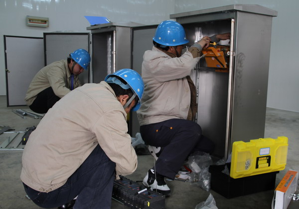 為快速、順利推進高低壓開關(guān)成套設備、三箱類產(chǎn)品、橋架及母線生產(chǎn)項目,公司高度重視相關(guān)管理、技術(shù)、市場經(jīng)驗積累,購進數(shù)控機床,整合資源,創(chuàng)造條件,在抓好新廠籌建的同時,在原臺北供電所辦公場地進行低壓電氣設備開工試生產(chǎn)。領(lǐng)導班子成員全部親臨現(xiàn)場指導、觀摩。試生產(chǎn)現(xiàn)場,剪切、鉆孔、打磨、安裝、調(diào)試,有條不紊。一個個電纜分支箱、高低壓柜相繼“誕生”。低壓配電設備開工試生產(chǎn),為加快項目建設步伐奠定了基礎(chǔ)。(司宣)