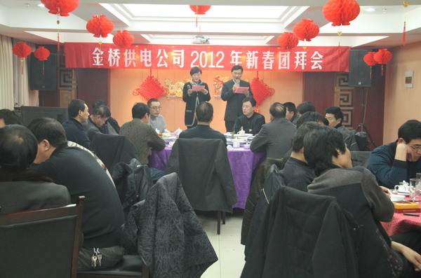 1月19日下午,公司在淮鹽大酒店舉行2012年春節(jié)團(tuán)拜會(huì),公司領(lǐng)導(dǎo)、各單位領(lǐng)導(dǎo)班子成員、機(jī)關(guān)全體人員、淮鹽大酒店領(lǐng)班以上人員歡聚一堂,同賀新春。黨委副書(shū)記、副總經(jīng)理陳雨華致辭,總經(jīng)理、黨委書(shū)記書(shū)記范益寶宣布聯(lián)歡晚會(huì)開(kāi)始,舉杯共慶佳節(jié)。(司宣)