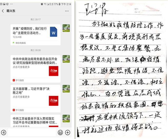 為了引導(dǎo)黨員統(tǒng)一思想認(rèn)識,凝聚思想共識,激發(fā)黨員做好疫情防控工作的思想自覺和行動自覺。2月12日,臺南供電所通過微信方式組織開展了“疫情防控,我們在行動”主題黨日活動。在微信平臺上,黨員們共同學(xué)習(xí)了《中共中央政治局常務(wù)委員會召開會議研究新型冠狀病毒感染的肺炎疫情防控工作 》、《五方面部署,習(xí)近平落子“決勝之地”》、《江蘇省委常委會召開會議進(jìn)一步把疫情防控工作做實做細(xì)做到位》重要指示精神;同時,開展了“我為疫情防控出份力”活動,全體黨員暢談疫情防控體會和做法。黨員王守富在活動中表示,作為一名基層黨員,前提是形成思想共識,不參與集體聚餐,在家盡量不外出,不信謠、不傳謠,樹立信心奮力營造眾志成城抗擊疫情的積極氛圍,在黨中央統(tǒng)一領(lǐng)導(dǎo)下,一定能打好疫情防控保衛(wèi)戰(zhàn)。(劉繼美)