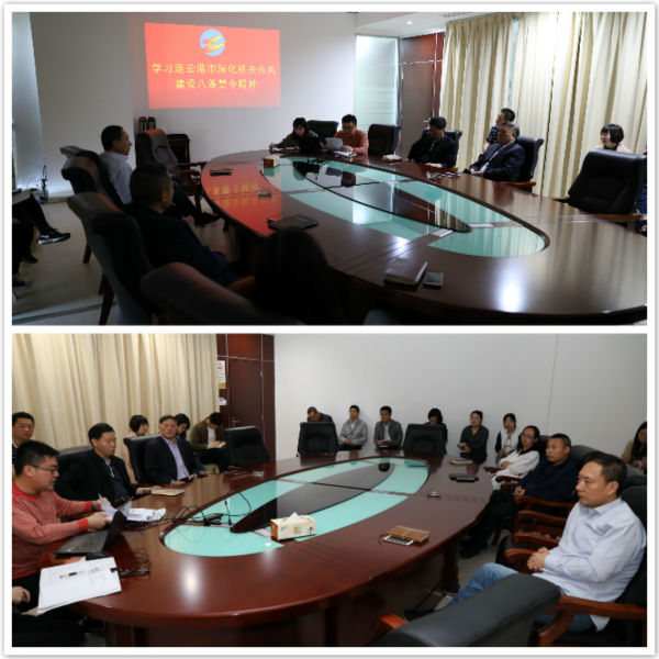5月23日上午,機關(guān)全體黨員在公司1203會議室參加了學習市紀委《連云港市深化機關(guān)作風建設(shè)八條禁令》通知精神的會議,機關(guān)黨支部書記朱兵主持會議并傳達了深化機關(guān)作風建設(shè)八條禁令文件的精神及要求。