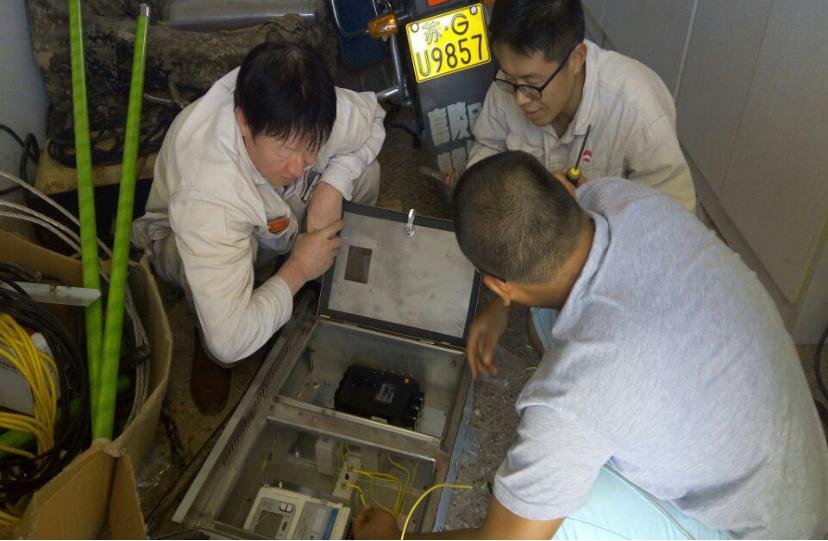 徐圩供電所老師傅指導(dǎo)新進員工學(xué)習(xí)計量箱安裝