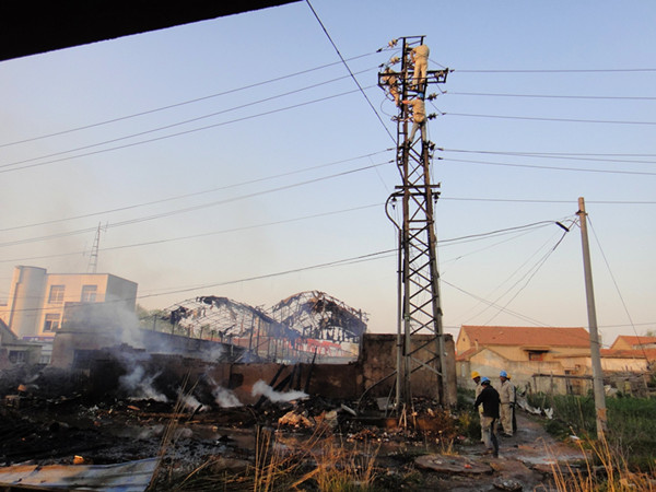 4月20日下午1:30左右燒香河大橋旁廢品收購站起火,大火借助風勢向南直沖大橋,將橋北的高壓線路燒毀,臺南供電所立即組織人員搶修,及時將受災線路修復送電,避免了損失進一步擴大。