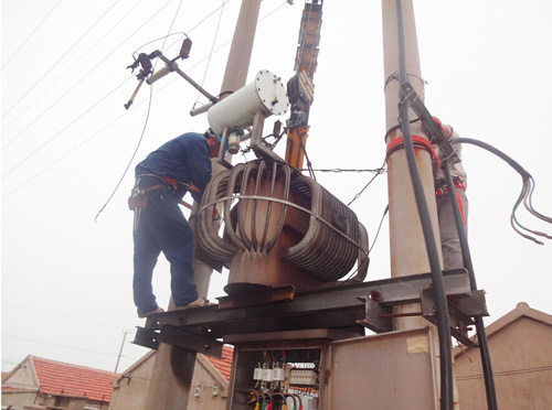連日來,天氣持續(xù)高溫,用電負(fù)荷也隨之加大,轄區(qū)原有設(shè)計的供電線路及變壓器容量已不能滿足居民生活用電的需求,供用電矛盾日益突出。特別是4號變壓器供電區(qū)域大、容量小,已嚴(yán)重危急到供電質(zhì)量和供電安全運(yùn)行。為此,所領(lǐng)導(dǎo)決定將原有的160KVA變壓器更換為250KVA變壓器。為了避開高溫時斷,大家起早作業(yè),但還是忙的汗流浹背。他們顧不上休息,加快設(shè)備更換速度,終于在上午八點(diǎn)前完成更換任務(wù),恢復(fù)供電。(王志勇)