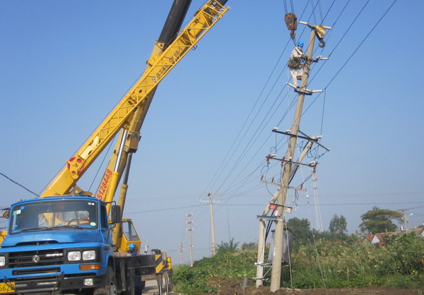 圖為工人們在搶修 9月29日凌晨1點(diǎn)20分,青口供電所同桿架設(shè)的10KV大新線、新站線3號桿和幸福村的72號臺變被拉挖掘機(jī)汽車撞斷,造成大新線、新站線和幸福村100多戶居民斷電。為盡快恢復(fù)供電,該所領(lǐng)導(dǎo)安排人員備料、施工,從凌晨5點(diǎn)一直工作到下午1點(diǎn)鐘,兩條高壓線路恢復(fù)供電,下午4點(diǎn)鐘幸福村臺變也搶修完畢。(宋中文)