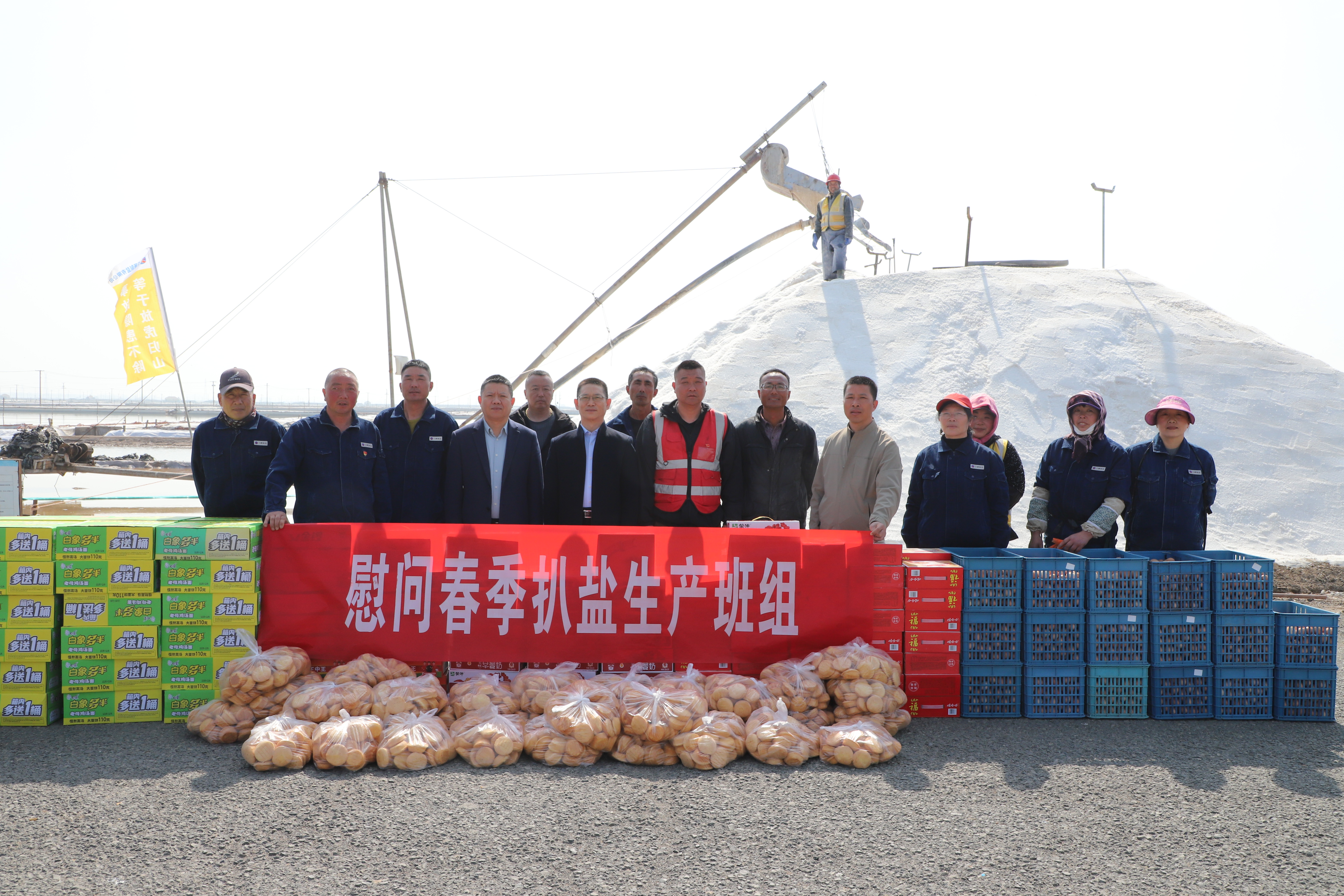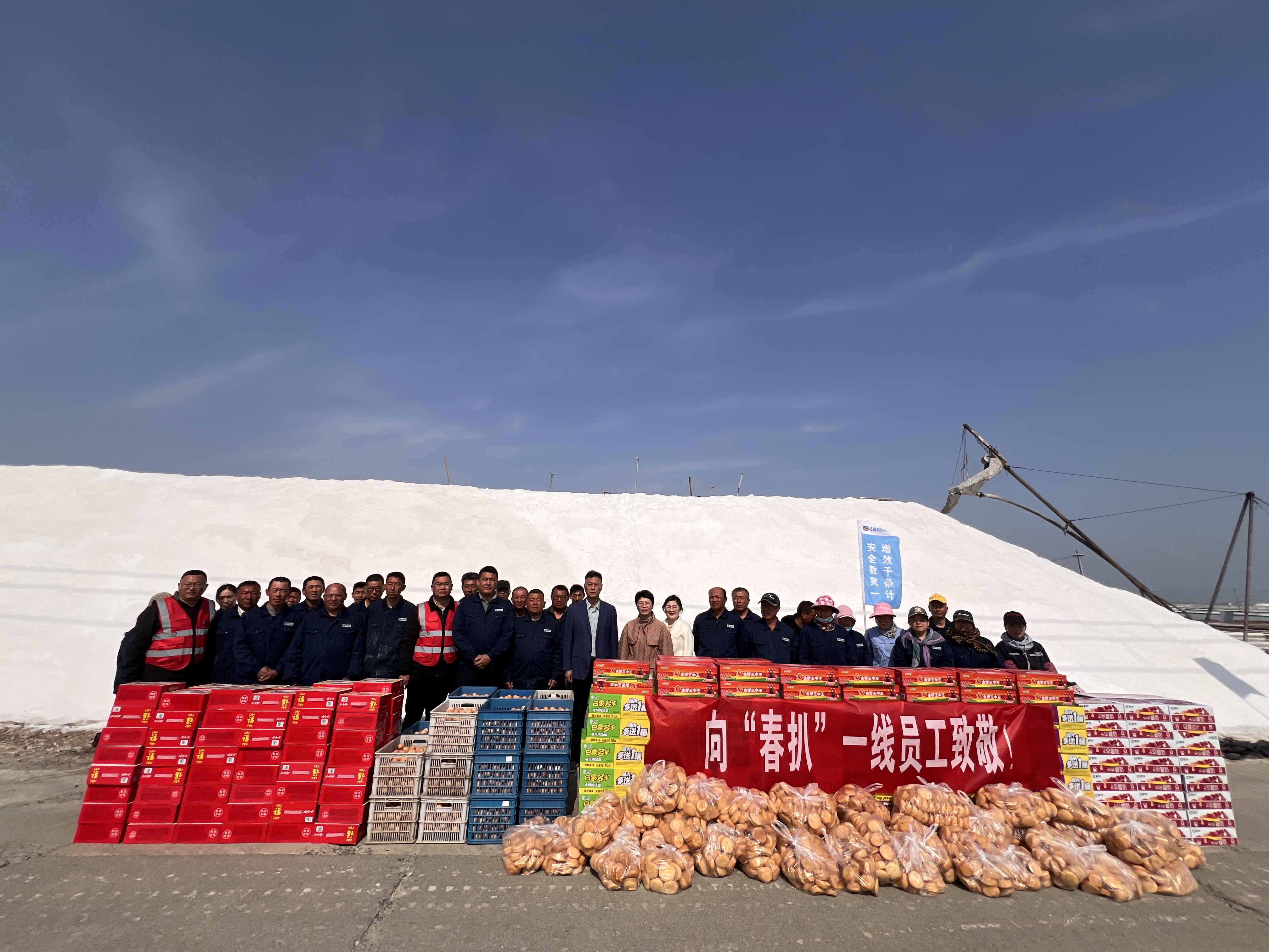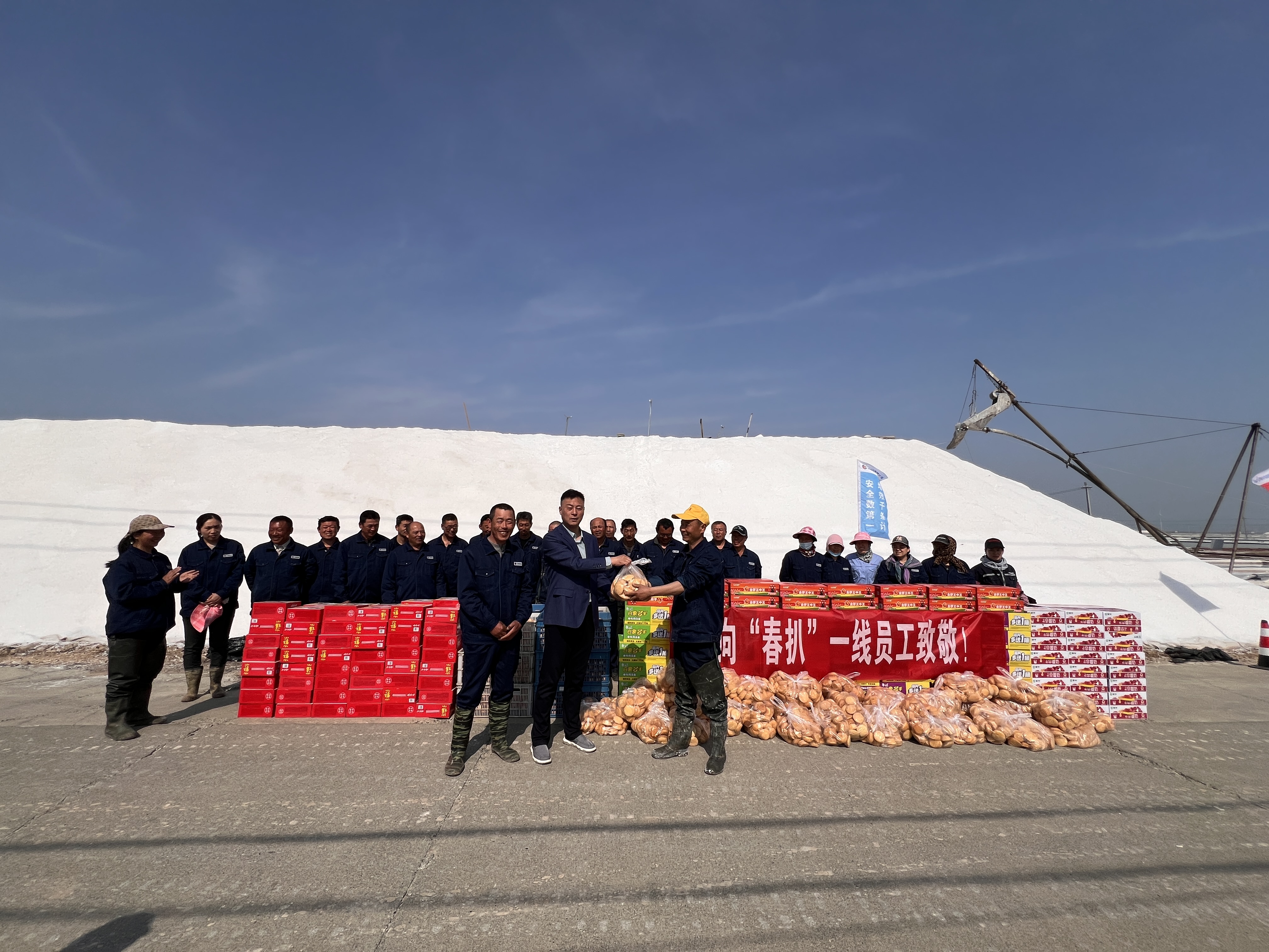 “你們辛苦了,我代表公司來看望大家。”在新河十班與埒南十一班,吳衛(wèi)平與扒鹽現(xiàn)場職工握手問好,感謝他們在過去的一年為日曬制鹽公司的原鹽生產(chǎn)所付出的辛勤努力,叮囑他們一定要落實落細扒鹽生產(chǎn)措施,增強責任感和警覺性,嚴格執(zhí)行各項規(guī)章制度,切實保障扒鹽期間的安全生產(chǎn),并送上雞蛋、八寶粥、方便面、牛奶等物品。