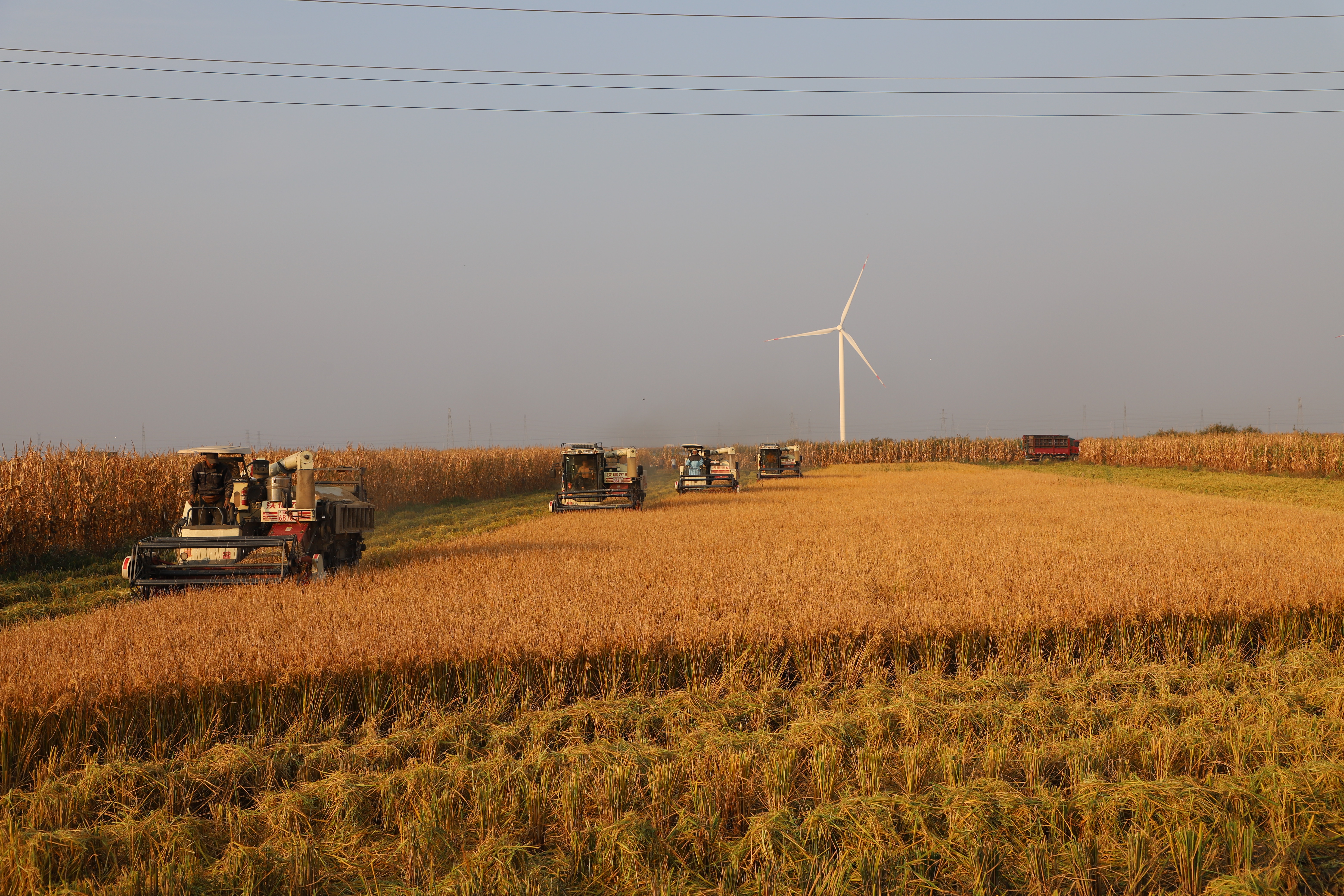 秋高氣爽,稻谷飄香。當(dāng)下,正是水稻收割的大忙季,田間稻浪翻滾,馬達轟鳴,一臺臺收割機在稻田里來回穿梭,割稻、脫穗、粉碎稻桿一氣呵成,一壟壟沉甸甸的稻谷很快便收獲歸倉,田間一派繁忙、豐收的景象。