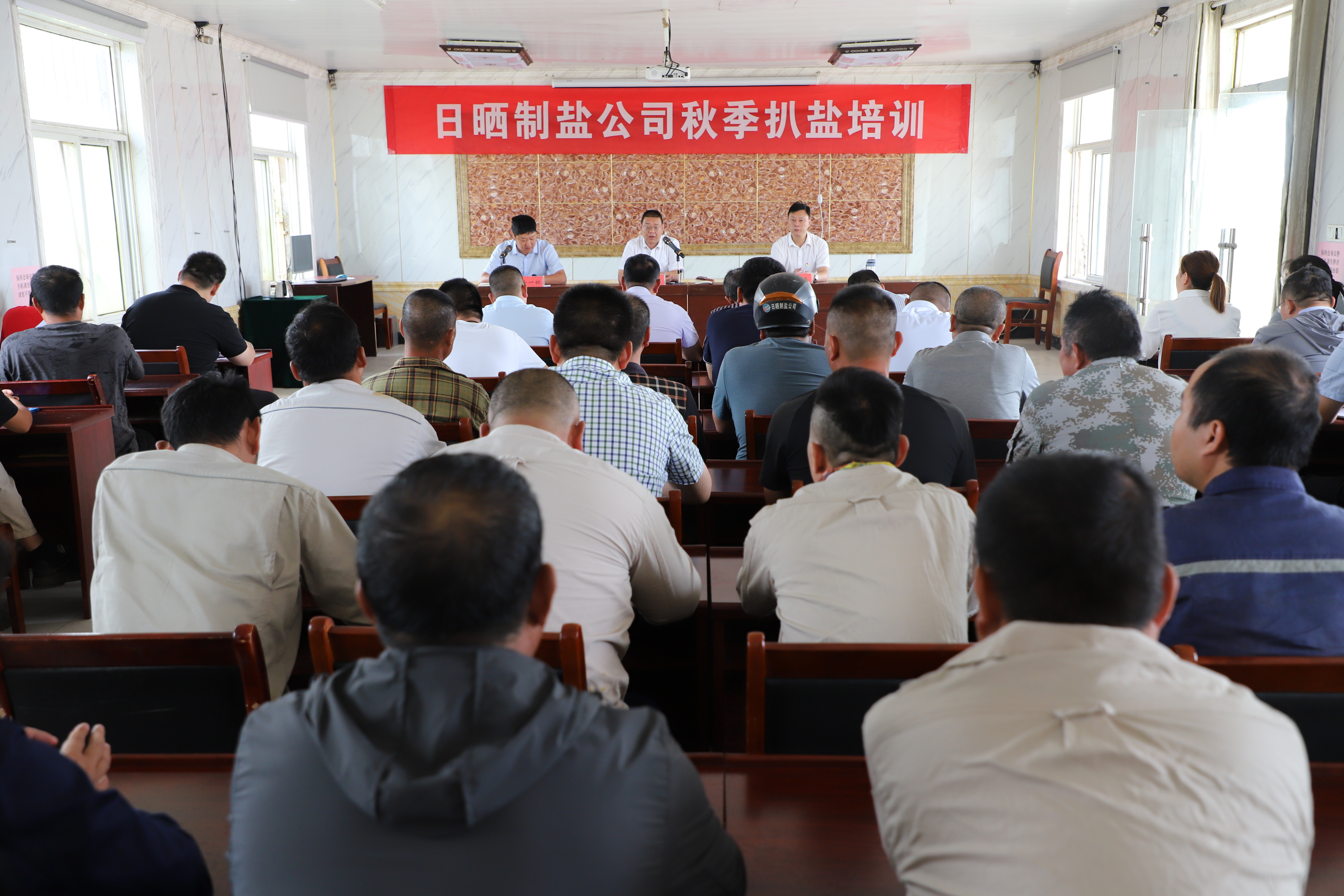 為貫徹落實(shí)“安全第一,預(yù)防為主,綜合治理"的安全生產(chǎn)方針,提高員工安全意識(shí)和安全操作技能,9月15日上午,公司開展扒鹽培訓(xùn),公司黨委書記、董事長孫政權(quán)、總經(jīng)理吳衛(wèi)平出席,常務(wù)副總經(jīng)理徐一林主持會(huì)議,日曬制鹽管理人員、后勤人員及公司帶班人員參加培訓(xùn)。