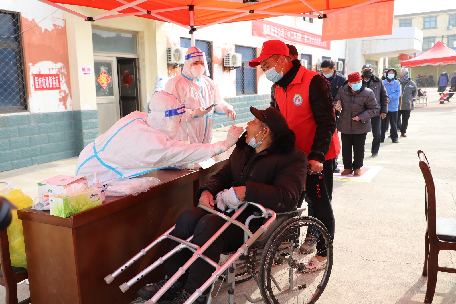 檢測(cè)現(xiàn)場(chǎng),各單位組織黨員先鋒隊(duì)成員、社區(qū)志愿者不斷優(yōu)化現(xiàn)場(chǎng)服務(wù),提醒居民群眾提前出示“蘇康碼”,有序排隊(duì),讓等待時(shí)間更短一點(diǎn)、人員距離更遠(yuǎn)一點(diǎn)、個(gè)人防護(hù)更好一點(diǎn)。另一方面,灌西檢測(cè)點(diǎn)開設(shè)老者、孕婦、兒童綠色通道,減少這部分人群排隊(duì)等候的時(shí)間,同時(shí)安排志愿者攙扶、幫助不會(huì)使用智能手機(jī)的老年人,確保他們順利完成核酸檢測(cè)。