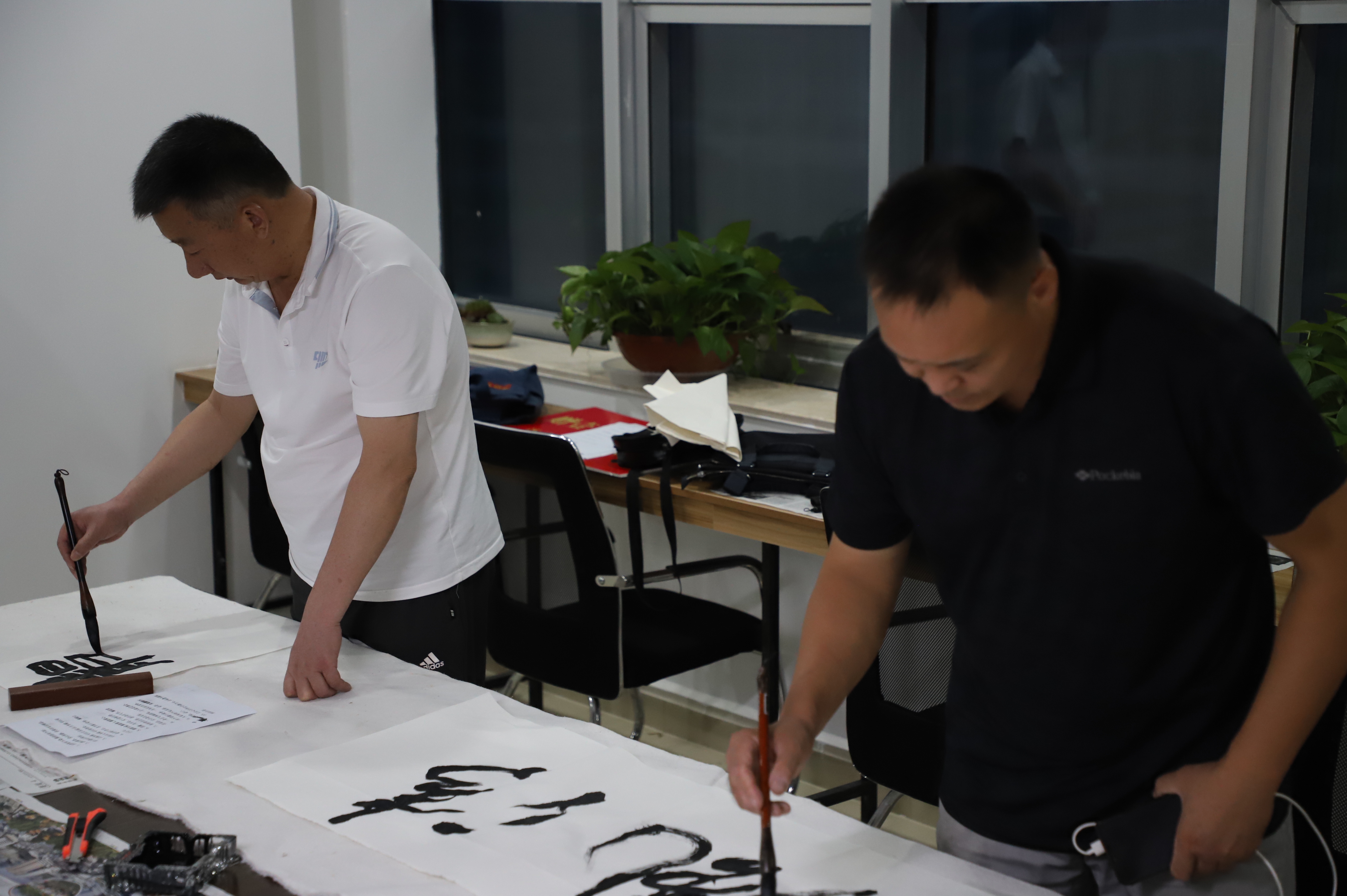 書法家濃墨重彩、精彩細(xì)膩、筆走龍蛇,書法作品筆力遒勁、氣勢磅礴、神采飛揚(yáng),以字抒懷,歌頌偉大共產(chǎn)黨的輝煌成就,描繪大家對(duì)祖國的熱愛之情。筆會(huì)當(dāng)天現(xiàn)場共創(chuàng)作書法作品20余件。