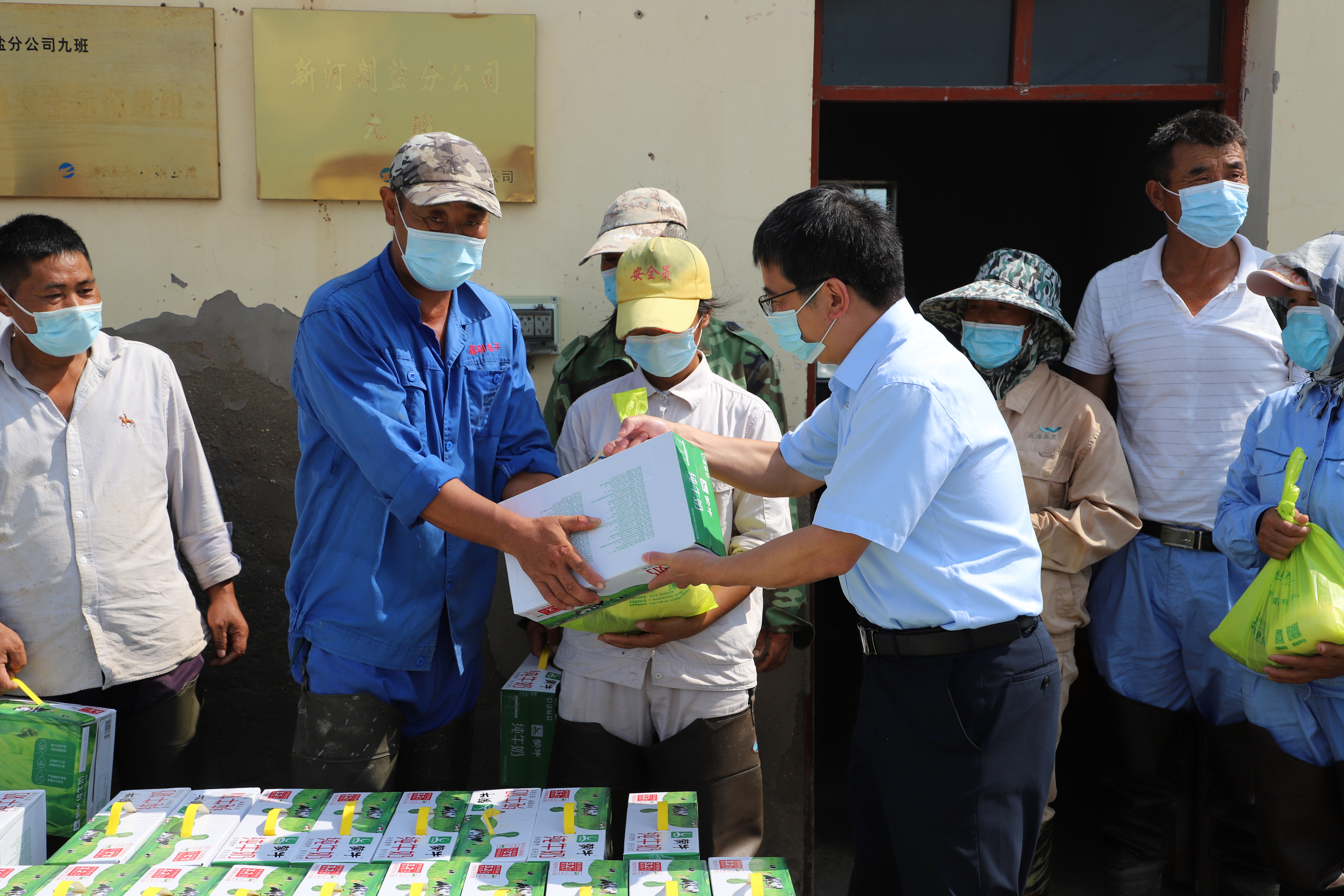 在新河制鹽分公司九班,楊國新代表集團(tuán)公司向堅持在鹽業(yè)生產(chǎn)一線的工人們表示深切的感謝和慰問,感謝他們在烈日下為集團(tuán)所付出的辛勞,并叮囑他們要避開高溫時段,科學(xué)合理安排好工作時間,既要保證生產(chǎn)質(zhì)量和進(jìn)度,又要注意防疫和高溫生產(chǎn)安全。