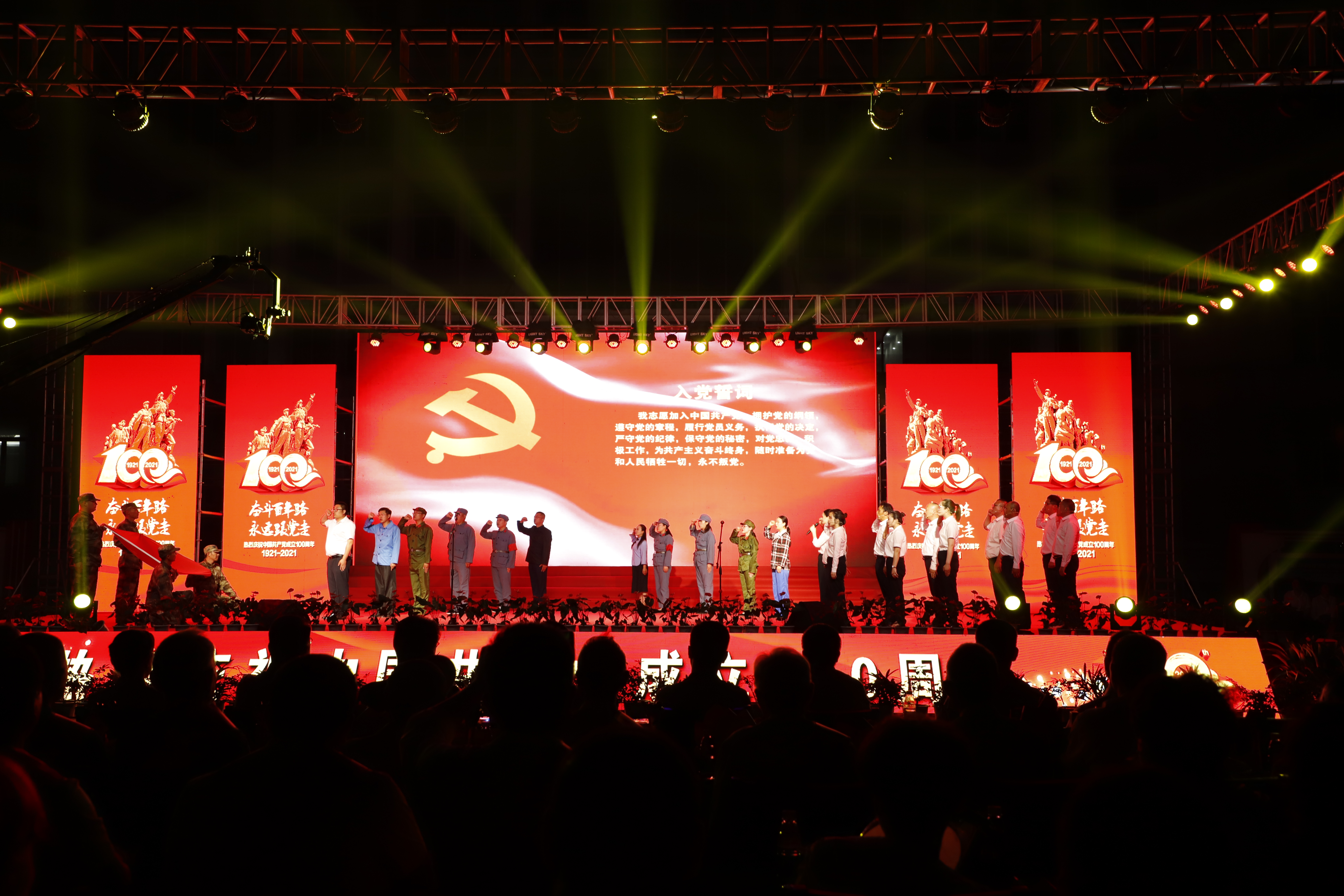 百年征程路漫漫,燦爛輝煌激人心,是中國共產(chǎn)黨指給了人民解放的道路,領(lǐng)導(dǎo)中國走向光明,是中國共產(chǎn)黨引領(lǐng)中華民族走向復(fù)興之路,奮進(jìn)新時(shí)代、開啟新征程,最后,全場人員同唱《沒有共產(chǎn)黨就沒有新中國》,10面國旗、10面黨旗在揮舞,整個(gè)舞臺(tái)成為一片紅的海洋,整場晚會(huì)圓滿落下帷幕。