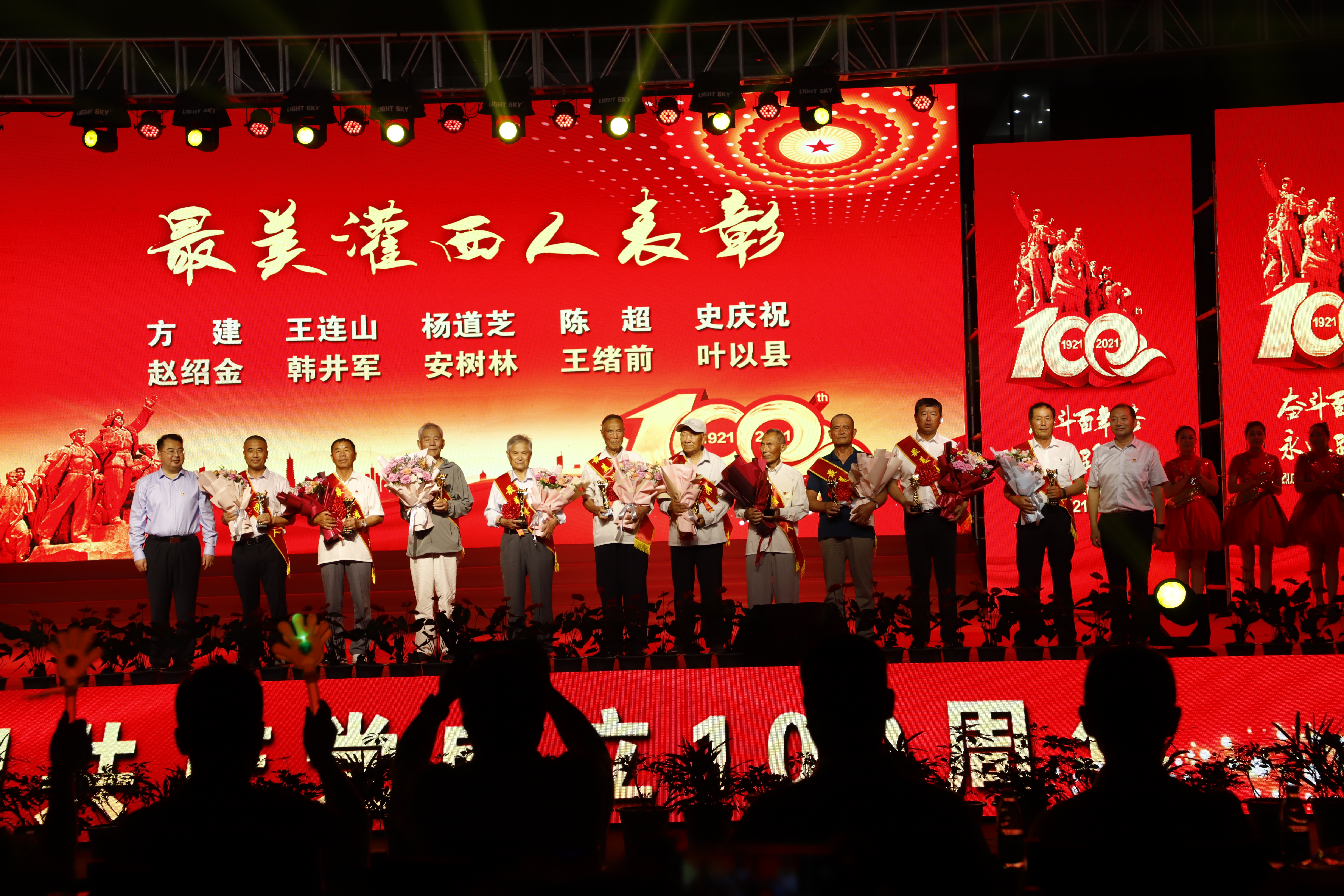在演出期間,對評選出的“最美灌西人”、10名優(yōu)秀員工和優(yōu)秀黨務(wù)工作者代表進(jìn)行了表彰,進(jìn)行抽獎(jiǎng)和黨史知識答題活動(dòng)。(西宣)