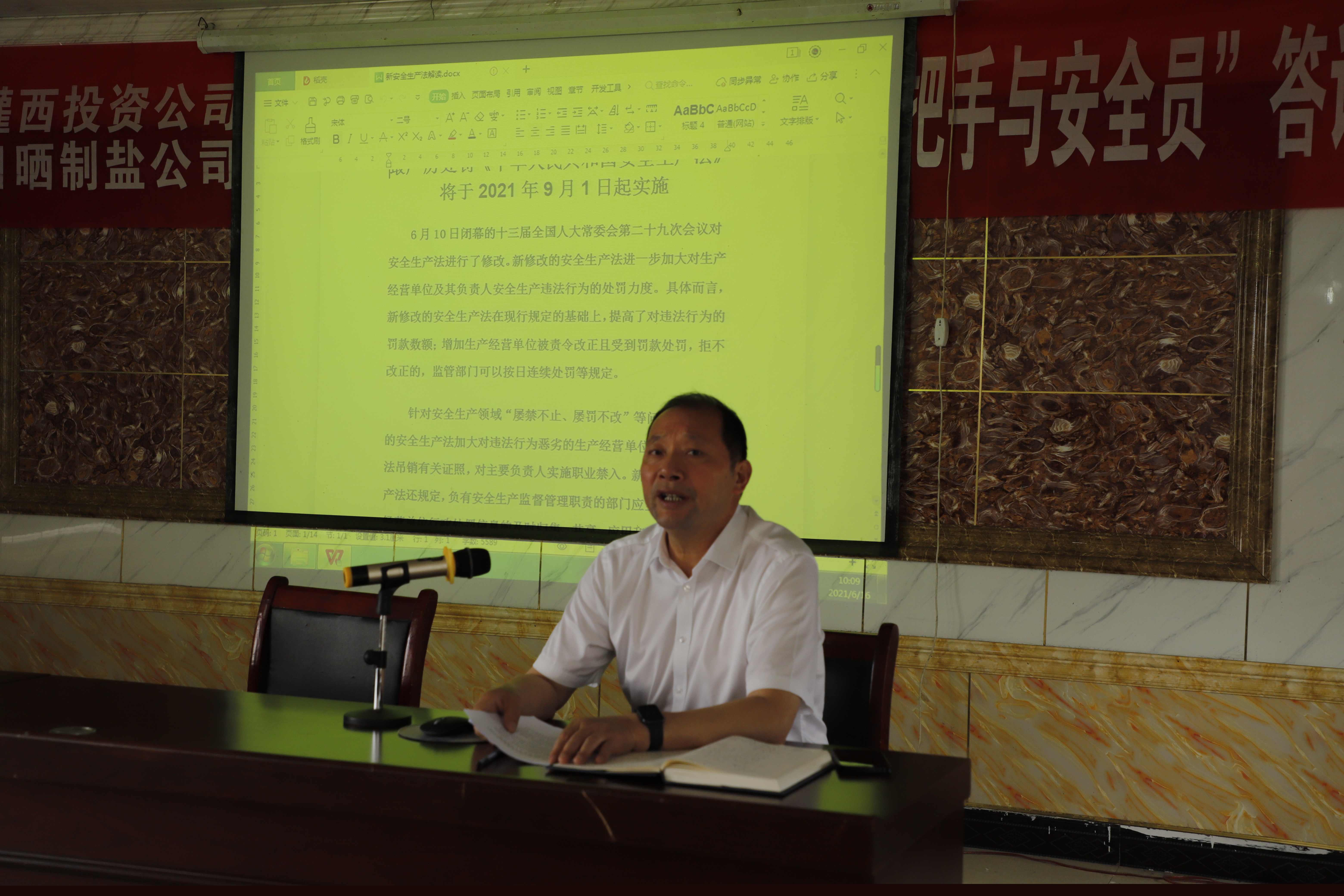 6月16日,灌西投資公司在生產(chǎn)服務(wù)公司召開“6.16”安全宣傳日暨“一把手與安全員”答詢會,黨委書記、董事長、總經(jīng)理李國文,常務(wù)副總經(jīng)理吳衛(wèi)平,黨委副書記、工會主席王宏,公司安委會成員、各單位主要負(fù)責(zé)人、分管安全領(lǐng)導(dǎo)及班組長參會,工會主席王宏主持會議。