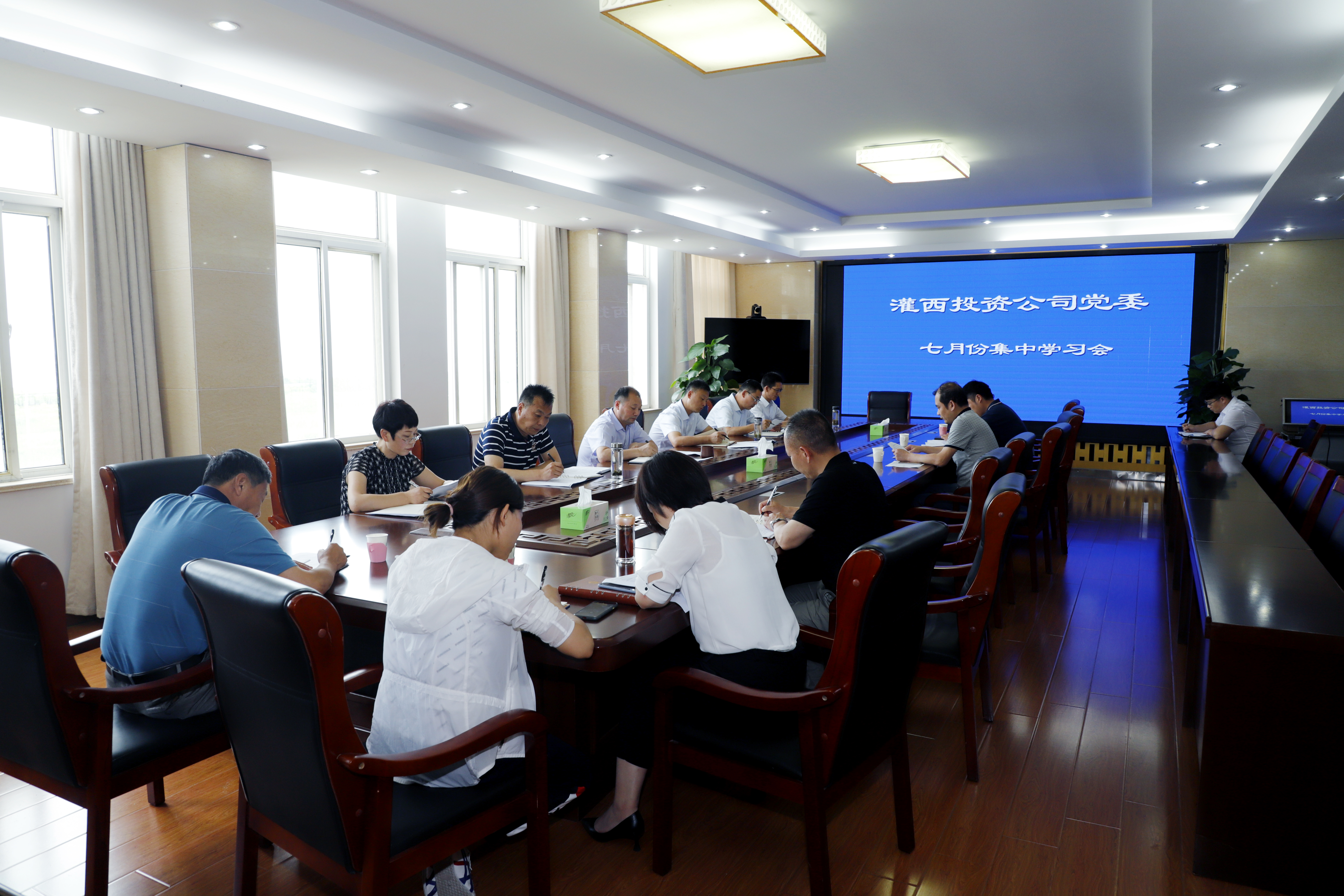 7月29日,灌西投資公司黨委理論學(xué)習(xí)中心組召開(kāi)集中學(xué)習(xí)會(huì)議,重點(diǎn)傳達(dá)學(xué)習(xí)了十九屆中央委員會(huì)第四次全體會(huì)議重要精神。投資公司黨委書(shū)記、董事長(zhǎng)、總經(jīng)理李國(guó)文,黨委班子成員吳衛(wèi)平、許太冬、王順友、王宏參加,總經(jīng)理助理及理論學(xué)習(xí)中心組相關(guān)同志列席會(huì)議。