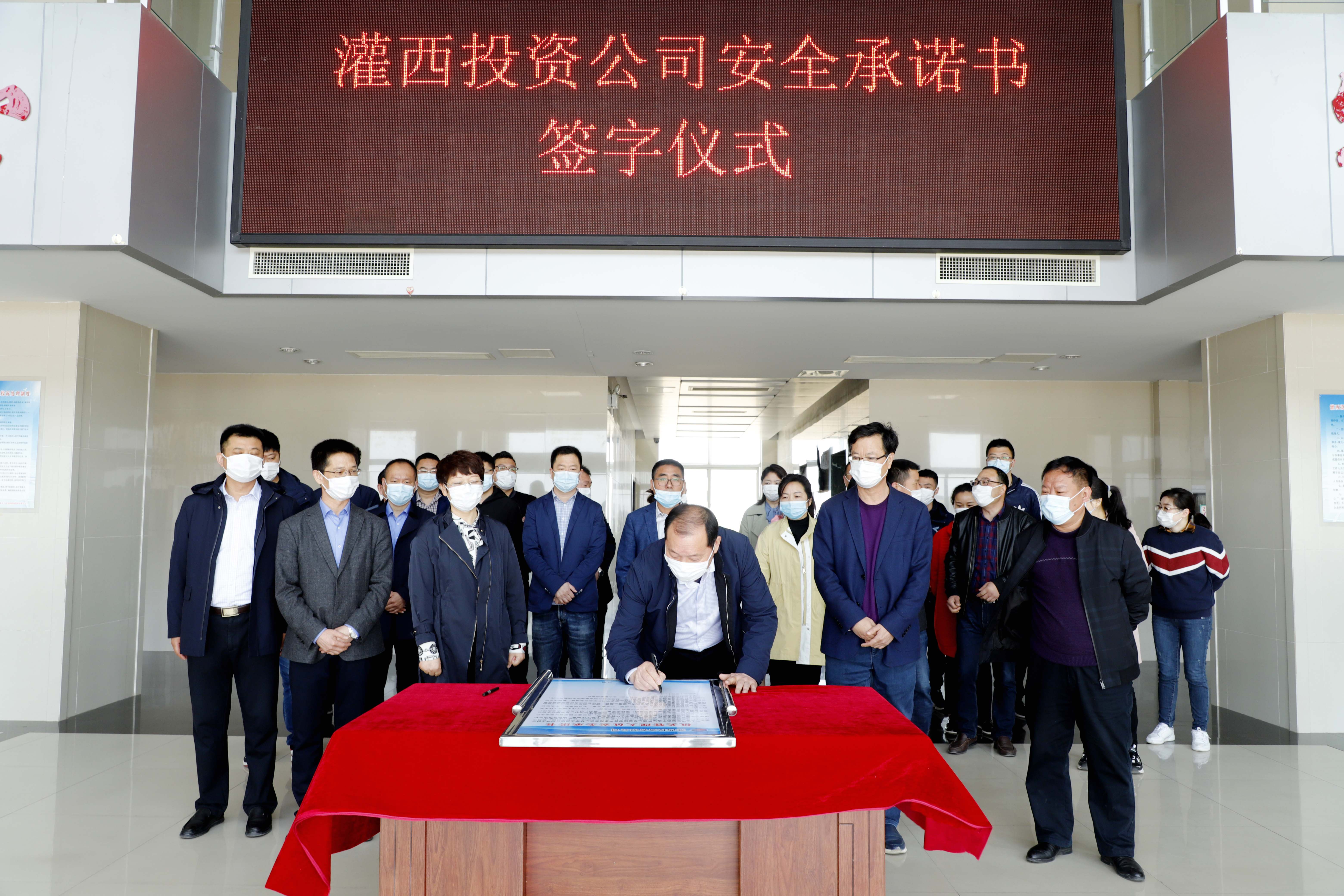 為確保安全生產(chǎn)工作的落實(shí),4月28日上午,灌西公司舉行了安全生產(chǎn)承諾書簽字儀式。在布置一新的簽字現(xiàn)場(chǎng),黨委書記、董事長、總經(jīng)理李國文帶頭在承諾書上鄭重地簽下了自己的名字。