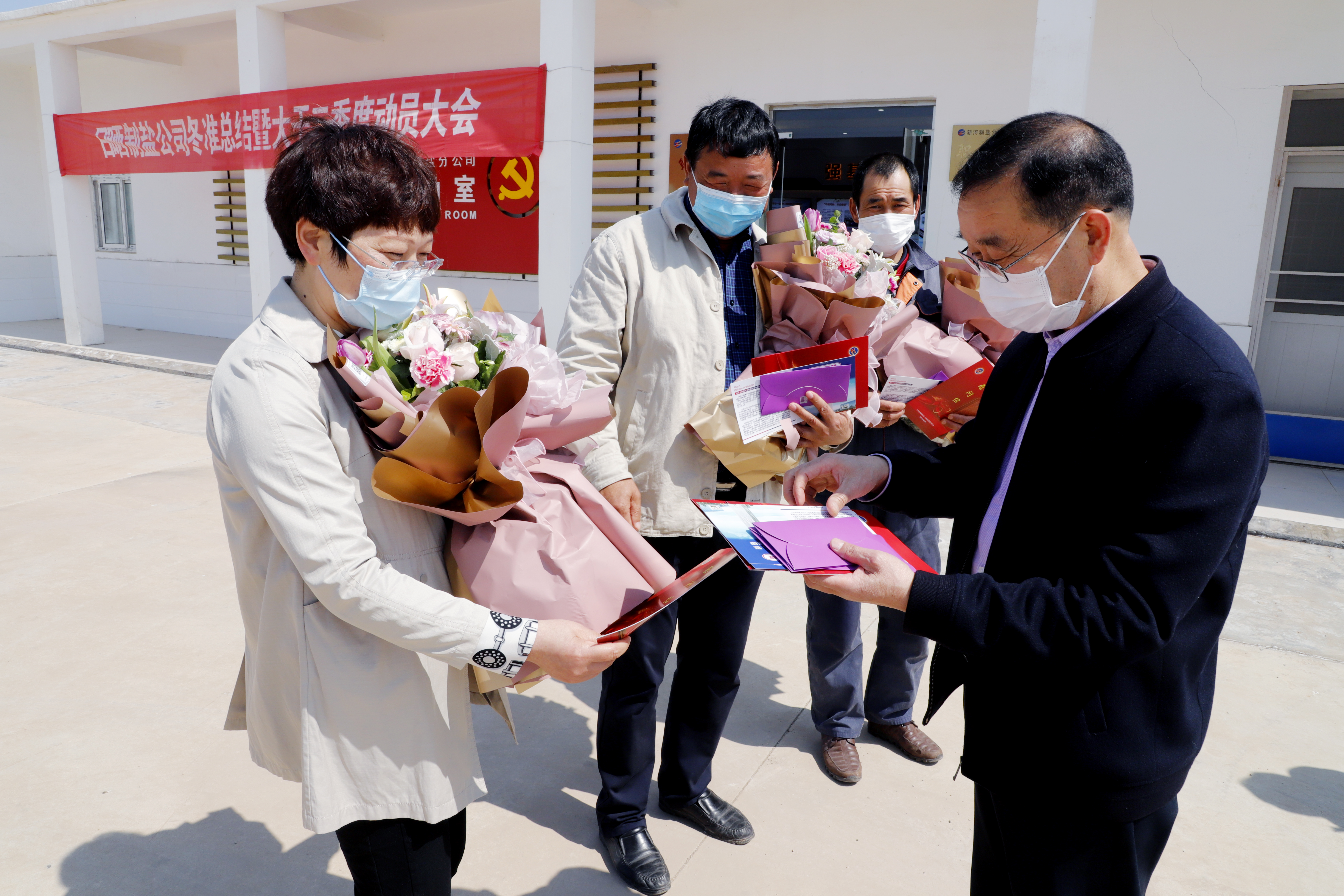 在日曬制鹽生產(chǎn)一線,胡建明集中看望了省勞動(dòng)模范安樹林,市勞動(dòng)模范祝星星、靳邦成,市五一勞動(dòng)獎(jiǎng)?wù)芦@得者王宏,與大家親切交流。胡建明說,你們是公司中的先進(jìn)代表,你們立足本職崗位,在公司高質(zhì)量發(fā)展征程中履職盡責(zé),無私奉獻(xiàn),發(fā)揮了示范引領(lǐng)作用。希望大家在各自崗位上繼續(xù)發(fā)光發(fā)熱,帶動(dòng)和激勵(lì)廣大勞動(dòng)者愛崗敬業(yè)、踏實(shí)工作,在苦干實(shí)干之中實(shí)現(xiàn)人生價(jià)值,在創(chuàng)新創(chuàng)業(yè)中爭(zhēng)做新時(shí)代的奮斗者。(張明建)
