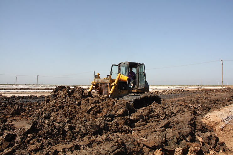 據(jù)了解,這次土地復(fù)墾區(qū)域位于埒南制鹽分公司西部的鈣液復(fù)曬區(qū)鹽灘,參與復(fù)墾整理的鹽田面積有1180畝。在此之前,公司有關(guān)部門已經(jīng)完成了測量、設(shè)計、報批等工序,目前已經(jīng)進入推除結(jié)晶區(qū)表層土階段,下一步,該復(fù)墾工程還要開展清淤、涼曬、回填等土方工程。工程施工結(jié)束后,再經(jīng)過整平、翻耕、泡田、撒肥等工序,直至土壤指標符合栽種才算完成,預(yù)計整個工程一直要持續(xù)到明年的4月底才能結(jié)束。(封楊)