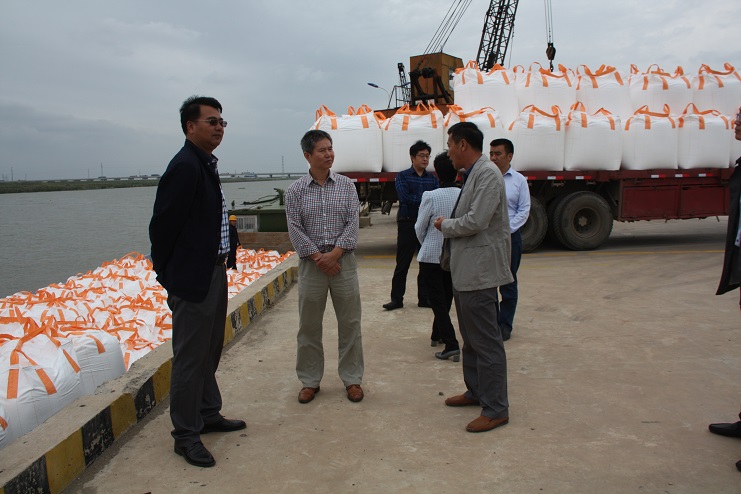 在五灌河碼頭現(xiàn)場,宵洋物流公司工人正忙于裝卸作業(yè),將車輛上化工產(chǎn)品噸袋物資吊裝下船艙,喻振東副局長一行首先到碼頭現(xiàn)場視察碼頭的生產(chǎn)建設情況,隨后到投資公司三樓會議室進行了座談。