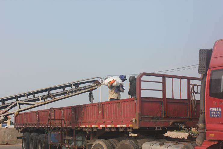 最后我們來(lái)到了筑包基地,流水線上工人分工明確,有的負(fù)責(zé)裝袋,有的負(fù)責(zé)封口,有的負(fù)責(zé)將其放上傳送帶。傳送帶的另一端,兩名工人站在貨車上,輪流將傳送上來(lái)的鹽包整齊的擺放在車廂里。