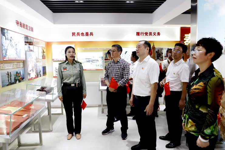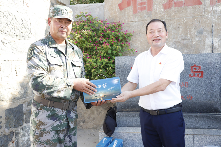 上午9點(diǎn)10分,隨著百名人員的陸續(xù)登島,往日寧靜的開山島突然熱鬧起來,紅旗飄舞,歌聲飛揚(yáng)。沿著山梯而上,重走全國“人民楷模”、“最美奮斗者”、優(yōu)秀共產(chǎn)黨員王繼才同志生前的巡島路線,追尋英模足跡;參觀“開山島夫妻哨所事跡展示館”,瞭望臺(tái)、生活間和營房,實(shí)地感受王繼才夫婦在環(huán)境異常惡劣的開山島上,以島為家、與海為鄰,舍家為國、不畏艱險(xiǎn),32年如一日堅(jiān)守海防事業(yè)的奉獻(xiàn)精神;在開山島最高處的國旗廣場上,黨員們一起觀看守島民兵升國旗,組織開展重溫入黨誓詞儀式,教育引導(dǎo)全體黨員不忘初心,牢記使命。