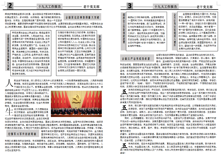 老干黨支部專門印發(fā)了十九大精神系列宣傳小報(bào),通過老年活動(dòng)室使老黨員們能靜下心來“讀原著、學(xué)原文、悟原理”。老黨員們對(duì)學(xué)習(xí)十九大精神熱情高漲,紛紛捧起小報(bào)仔細(xì)閱讀??紤]到有的黨員年齡偏大,老干黨支部將定期在老年活動(dòng)室組織十九大精神朗讀活動(dòng)。(唐蕾榮)