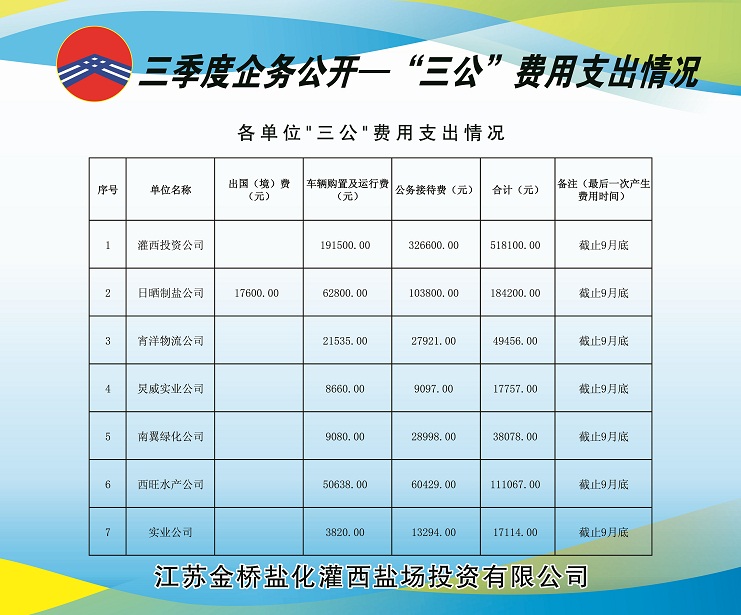 截至9月底,各單位三公費(fèi)用支出情況如下: