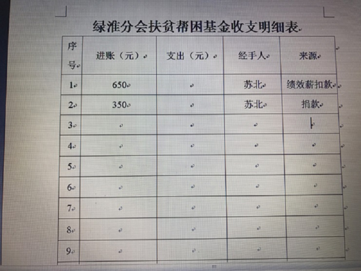 7月27日,綠淮公司出納將1000元現(xiàn)金匯入專(zhuān)有賬戶(hù),標(biāo)志著分會(huì)成功引入第一筆扶貧基金。 據(jù)了解,綠淮扶貧基金由員工當(dāng)月扣罰的績(jī)效薪以及自愿捐款、募捐等形成組成的一項(xiàng)專(zhuān)項(xiàng)資金,主要用于深入開(kāi)展“雙進(jìn)雙促”,力所能及地幫扶特困戶(hù)、困難戶(hù),做好職工的貼心人,為早日實(shí)現(xiàn)魅力灌西添磚加瓦。(蘇北)